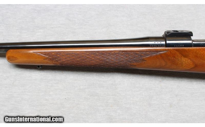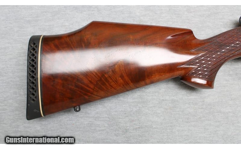 Description: FN High-Power chambered in 7mm Remington Magnum. This Belgium-made rifle is in excellent condition. It features a 24-inch barrel, a 13 1/2 inch LOP (over recoil pad), a long extractor, scope bases, and a jeweled bolt. The floor plate has engraved initials. The 7mm Remington Magnum bucks wind efficiently, is flat shooting and has relatively tolerable recoil. It is especially popular for big-game hunting in Western Canada and in the United States, for plains game in Africa, and mountain hunting around the world. 7mm Remington Magnum SOLD Metal Condition: Excellent Wood Condition: Excellent Bore Condition: Bright with strong rifling Barrels: 24 Inches Triggers: Factory Stock Dimensions: LOP 13 1/4 Inches Fore End: Checkered walnut Sights: Scope bases Item Location: La Vista, NE |