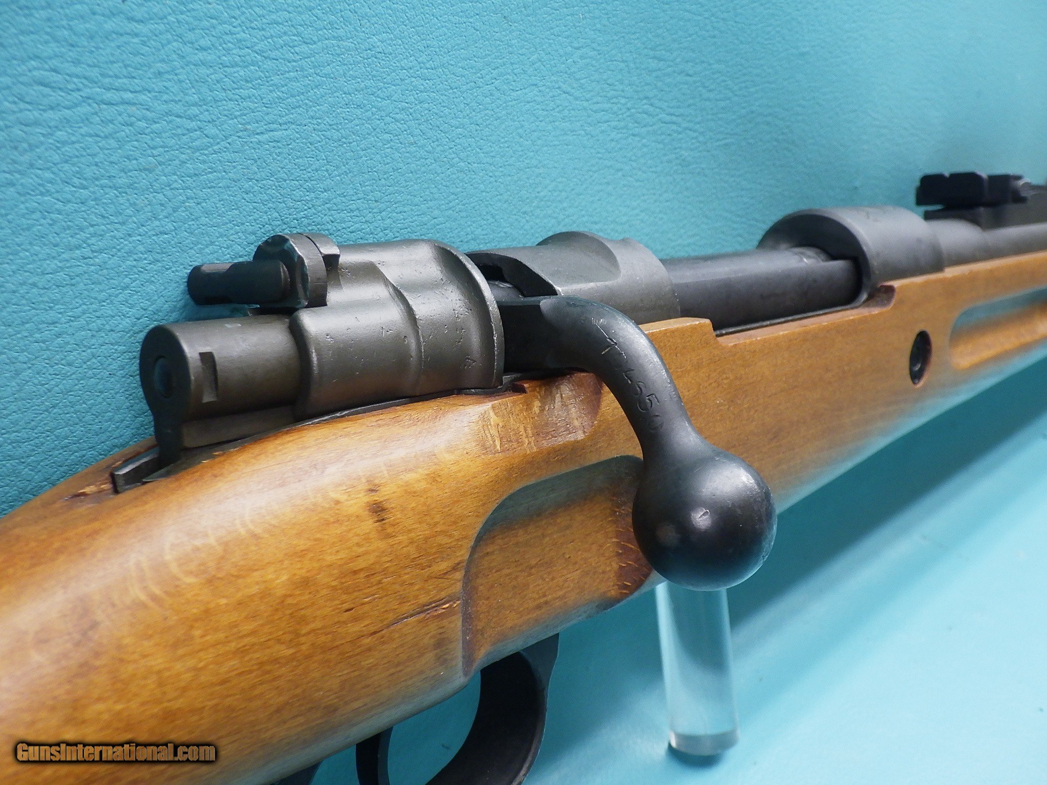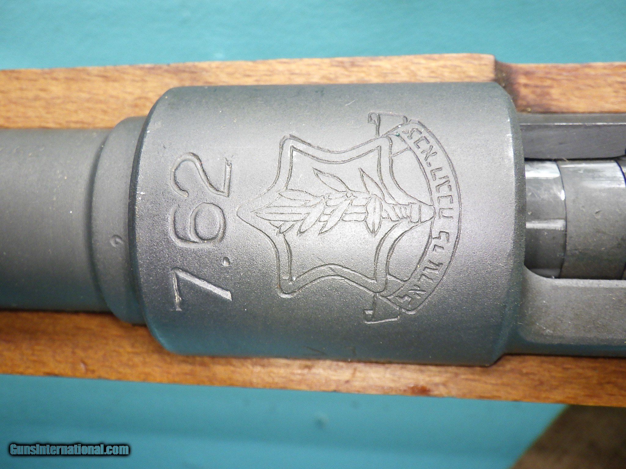 Description: **SOLD 8/25/2025** Capacity: 5 rounds Also Known As: FN Mauser K98 IDF Conversion Make: Fabrique Nationale (converted by Israel Military Industries) Model: K98 Finish: Blued steel Caliber: 7.62×51mm NATO (.308 Win) Action: Bolt-action Barrel length: Approx. 23.6" (600mm) Bore: Bright, excellent rifling Stock material: Hardwood, military profile Sights: Hooded front post, tangent rear sight graduated for 7.62 NATO Features: Receiver stamped with IDF markings, original FN K98 converted by IMI in 1958, FN serial number removed and replaced with IMI serial number, strengthened extractor, new sight graduations, and arsenal refinished stock for Israeli service use, authentic military sling included Scope: None MFG Date: Original rifle late 1940s–early 1950s (FN production); IMI conversion 1958 Extras: Authentic IDF marked sling Condition: Very good – metal retains strong finish, wood shows little/light service wear, mechanically excellent Shipping cost: $75.00 Tech: DH081325.1199 Please refer to the photos for the overall condition. FFL is required. A true Cold War and Middle East history piece — this FN Mauser K98 was built by Fabrique Nationale and later arsenal-converted by Israel Military Industries in 1958 to 7.62×51 NATO for service with the Israel Defense Forces. The original FN serial number was removed and replaced with the IMI number 704650, and the receiver proudly bears IDF markings. Featuring the classic Mauser action, hooded front sight, and hardwood military stock, it comes complete with an authentic IDF sling. These rifles saw service during some of Israel’s most pivotal years, making them highly sought-after by collectors and military history enthusiasts alike. This one remains in very good condition with a bright bore, strong finish, and light, honest service wear. A rare opportunity to own a battle-proven rifle from the formative years of the modern Israeli state. SOLD Rifle Caliber: 7.62x51mm NATO Manufacturer: Fabrique Nationale / IMI Model: K98 Serial Number: 704650 Barrel Length: 24 Condition: Excellent Metal Condition: Excellent Wood Condition: Excellent Bore Condition: Excellent |