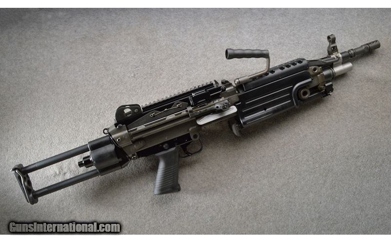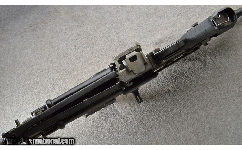 Description: Own the newest addition to the Military Collector Series – the FN M249S PARA, a semi-auto version of the currently contracted FN® M249 PARA. The PARA was designed for airborne, armored infantry and close quarters combat (CQC) operations with a shorter barrel and collapsible buttstock. It retains all of the features of the FN M249 SAW and can be field-converted back to the standard model configuration in just 30 seconds. PRIMARY FEATURES: Semi-automatic replica of the government-issue FN M249 PARA, robust gas piston system. RECEIVER: Formed steel frame, folding steel bipod, folding carry handle, flip-up feed tray cover and feed mechanism, top-cover integrated MIL-STD-1913 rail systems for optics BARREL: Cold hammer-forged steel, hard chrome-plated bore and chamber, quick-change barrel capability, removable heat shield. STOCK: Rotating, telescoping buttstock with hydraulic recoil buffer and non-slip buttplate. OPERATING CONTROLS: Crossbolt safety, redesigned trigger mechanism for semi-automatic fire, non-reciprocating charging handle. FEED SYSTEM: Standard disintegrating link belt-fed, under-mounted polymer ammunition container helps keep ammunition cleaner for reduced wear and added reliability. 5.56x45mm NATO SOLD Chambers: "200 round belt or 30 round magazine, semi auto. Metal Condition: New. Bore Condition: New. Barrels: "16"" cold hammer forged, removable heat shield. Triggers: Single. Stock Dimensions: Adjustable. Fore End: Polymer. Butt Pad: Metal. Weight: 17.2 lbs Sights: "Hooded front post, adjustable rear, top-cover integrated mil-std-1913 rail systems for optics. Item Location: Owatonna, MN |