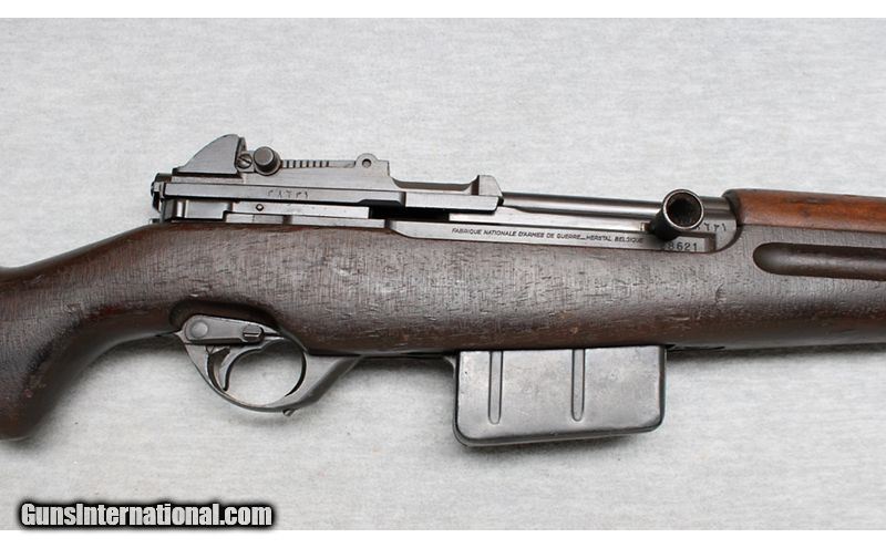 Description: The Fabrique Nationale Model 1949 (M49) in 8 MM Mauser. This is an autoloading battle rifle that was adopted by the militaries of many nations. Though it was a reliable, well designed and built rifle, it was limited to a 10 round magazine and FN lost sales to other selective-fire rifles of that time. This rifle was 1 of the 37,000 M49s manufactured for the Egyptian military. This rifle is in very good mechanical condition with many handling marks on the stock. 8mm Mauser SOLD Curio/Relic: Yes Chambers: 8MM Mauser Metal Condition: Very good Wood Condition: Good with many handling marks Bore Condition: Brighrt with good rifling Barrels: 22 Inches Triggers: Factory Stock Dimensions: LOP 13 Inches Fore End: Grooved hardwood Butt Pad: Smooth metal pad Sights: "Ladder aperture rear sight, Front adjustable post Item Location: La Vista, NE |