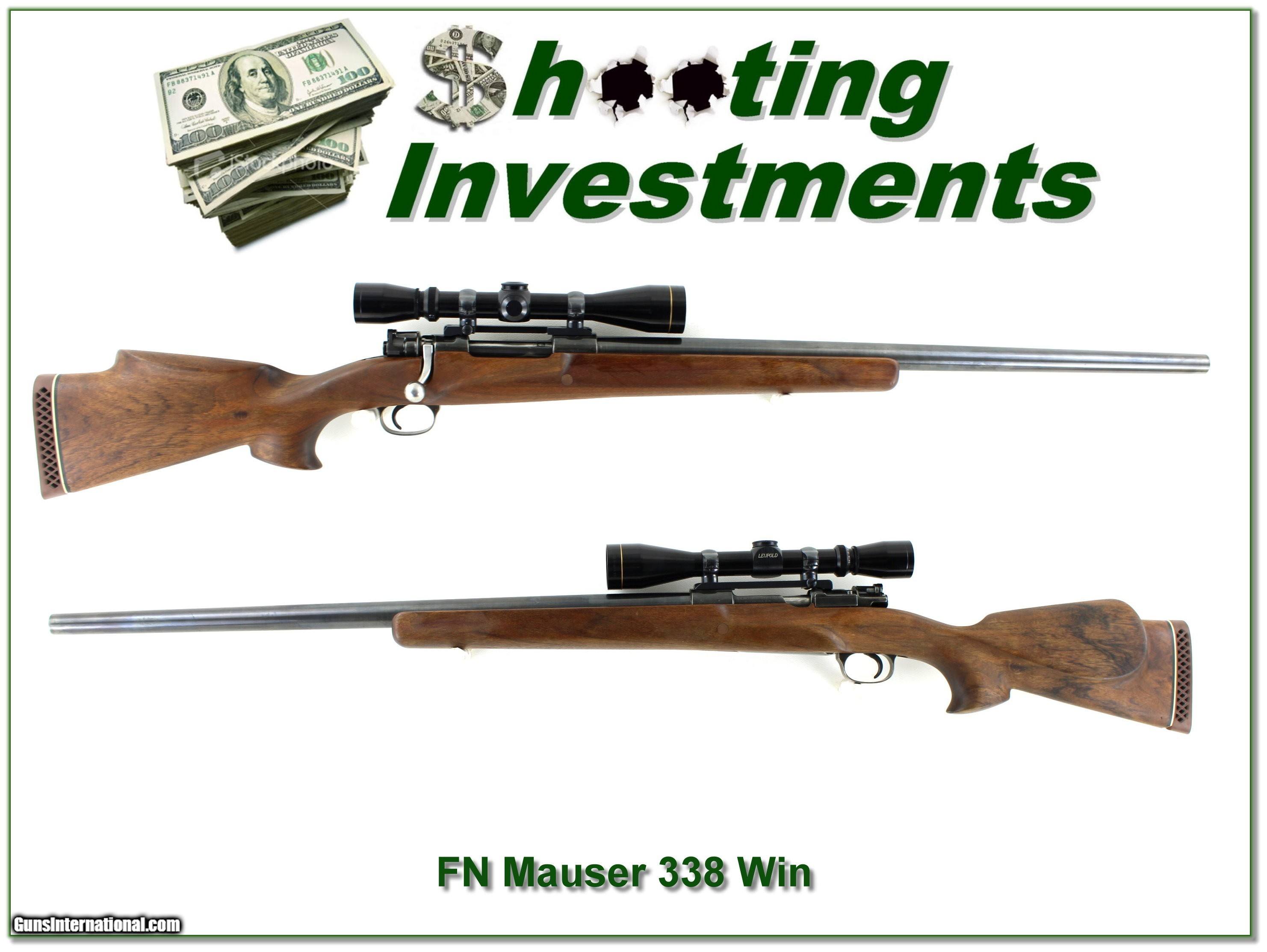 FN Mauser custom 338 Win Mag 26in Bull Barrel Leupold scope
