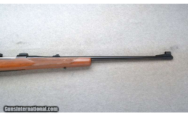 Description: This FN Right Hand Bolt Action Model is a rifle that comes in .243 Win. Cal. It has a 24.5 inch barrel. A hooded front blade sight and a folding adjustable notch middle sight. Scope mount bases are attached. The butt stock is a checkered grip hardwood pistol grip with a raised cheekpiece and rosewood cap. The forearm is a checkered grip hardwood. .243 Winchester SOLD Chambers: Internal magazine with a hinged floorplate. Metal Condition: Excellent. Wood Condition: Good. Has light handling/use marks. Bore Condition: Excellent. Barrels: 24.5 inch. Stock Dimensions: 14 inches. Fore End: Checkered grip hardwood. Butt Pad: Brown rubber recoil pad. Weight: 8 lb. 8 Oz. Sights: Hooded front blade. Folding adjustable notch middle. Scope mount bases attached. Item Location: Richfield, WI |