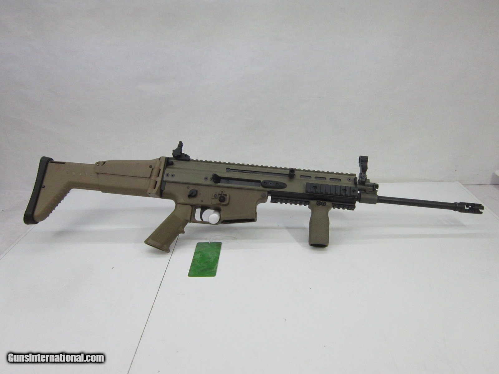 Description: Guns Listing ID: 1318834 MAKE: FNH MODEL: 16S ACTION: Semi CALIBER: 5.56 NATO FINISH: FDE TYPE OF STOCK: Adjustable polymer CONDITION: Very good BARREL LENGTH: 16\" OVERALL LENGTH: 34 1/2 and 37\" SCOPE: N/A NUMBER OF MAGS: 1 CAPACITY: 30+1 CASE: N/A ACCESSORIES: N/A SERIAL #: L0C10391 Choke: N/A ADDITIONAL DESC: A very good condition modern sporting rifle. Includes one FN made magazine. Sorry, but there is no factory box, paperwork, sling, ammunition, cleaning kit, or any other tools or accessories for the firearm. While the firearm has been cleaned, lubed and inspected by our gunsmith, it has not been test fired. SOLD Manufacturer: FN Model: SCAR 16S AMERICAN Caliber Info: 5.56X45MM NATO Condition: Used - Non-Certified Barrels: 16 BARREL Finish: FLAT DARK EARTH |