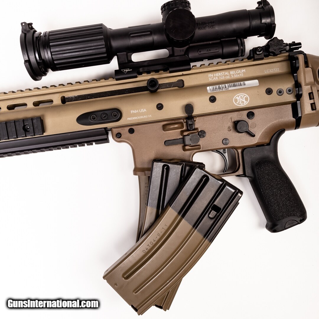 Description: Guns Listing ID: 469098 Offered for sale is this FN SCAR 16S, a semi-auto rifle chambered in 5.56 NATO. The SCAR series of rifles were originally made for U.S. Special Forces (SOF Combat Assault Rifle), but soon after their initial \"baptism by fire,\" they became available for civilians in a semi-automatic configuration. The SCAR 16S operates off a short-stroke gas piston and has proven to be incredibly reliable, durable, and accurate. This model sports a folding, adjustable stock, Geissele trigger, Trijicon VCOG, and a Blue Force sling. Three 30-round magazines are included. SOLD Manufacturer: FN Model: SCAR 16S Caliber Info: 5.56X45MM NATO Condition: Used - Certified Barrels: 16.3 BARREL Finish: FDE |