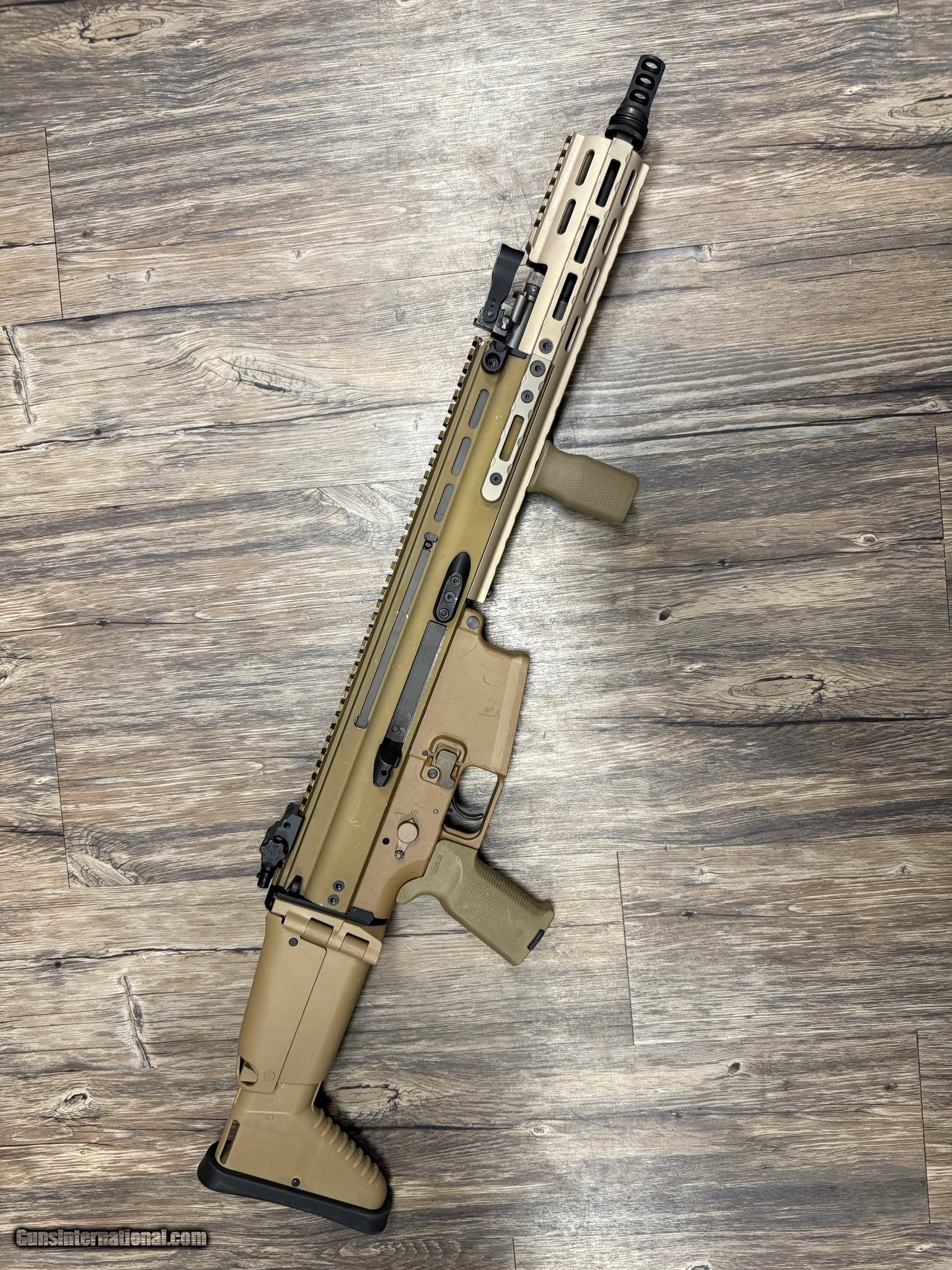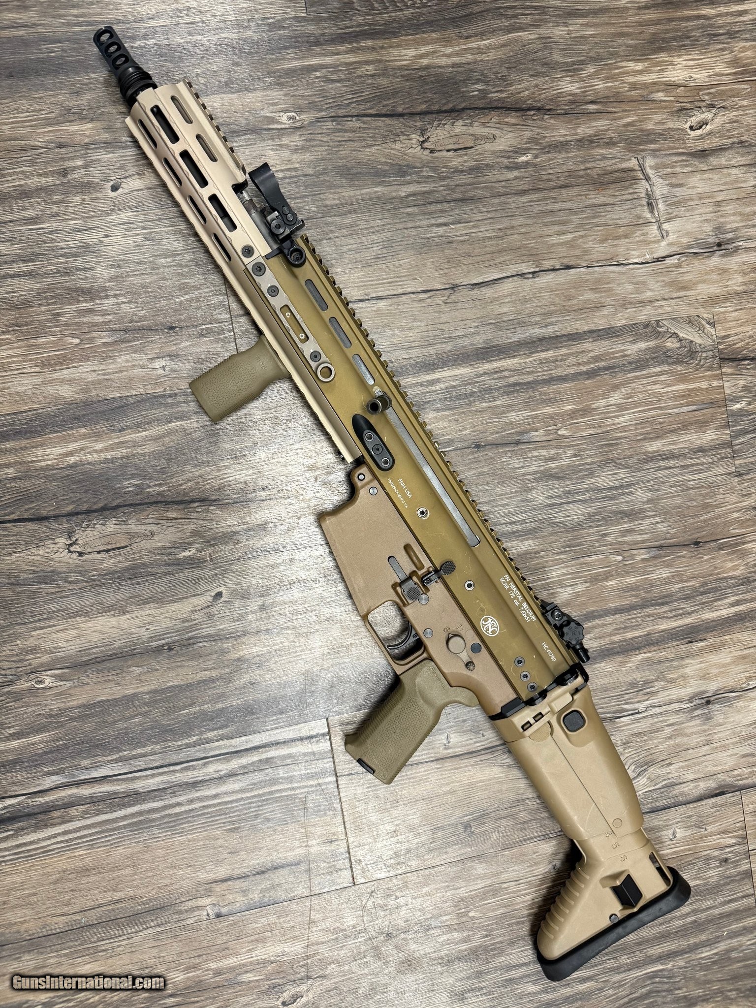 Description: Guns Listing ID: 557143 For sale is a Belgian-made FN SCAR 17S in 7.62x51 / .308, showing honest wear but plenty of life left. This rifle has been extensively upgraded with high-end aftermarket parts, making it a top-tier battle rifle setup. Specifications & Condition Caliber: 7.62 NATO / .308 Win Barrel: Modified 14.5\" barrel, with SilencerCo ASR muzzle brake pinned & welded for legal length Condition: Generous finish wear from use, but mechanically excellent and fully reliable Upgrades & Features SCARburator adjustable gas regulator GG&G enhanced charging handle Midwest Industries SOCOM extended rail for increased accessory mounting space Parker Mountain Machine ambi safety selector QD sling sockets + upgraded grip Geissele Super SCAR trigger – crisp and reliable Included Accessories 5 FN 20-round magazines Rifle ships as pictured, fully upgraded and ready for duty or range use The SCAR 17S is already a world-class battle rifle, but this one has been built out with premium aftermarket components that enhance reliability, ergonomics, and shootability. While it shows cosmetic wear from use, it remains a workhorse rifle with decades of service life ahead. SOLD Manufacturer: FN Model: SCAR 17S Caliber Info: .308 WIN/7.62MM NATO Condition: Used - Non-Certified Barrels: 14.5 BARREL Action: SEMI AUTOMATIC Finish: fde |