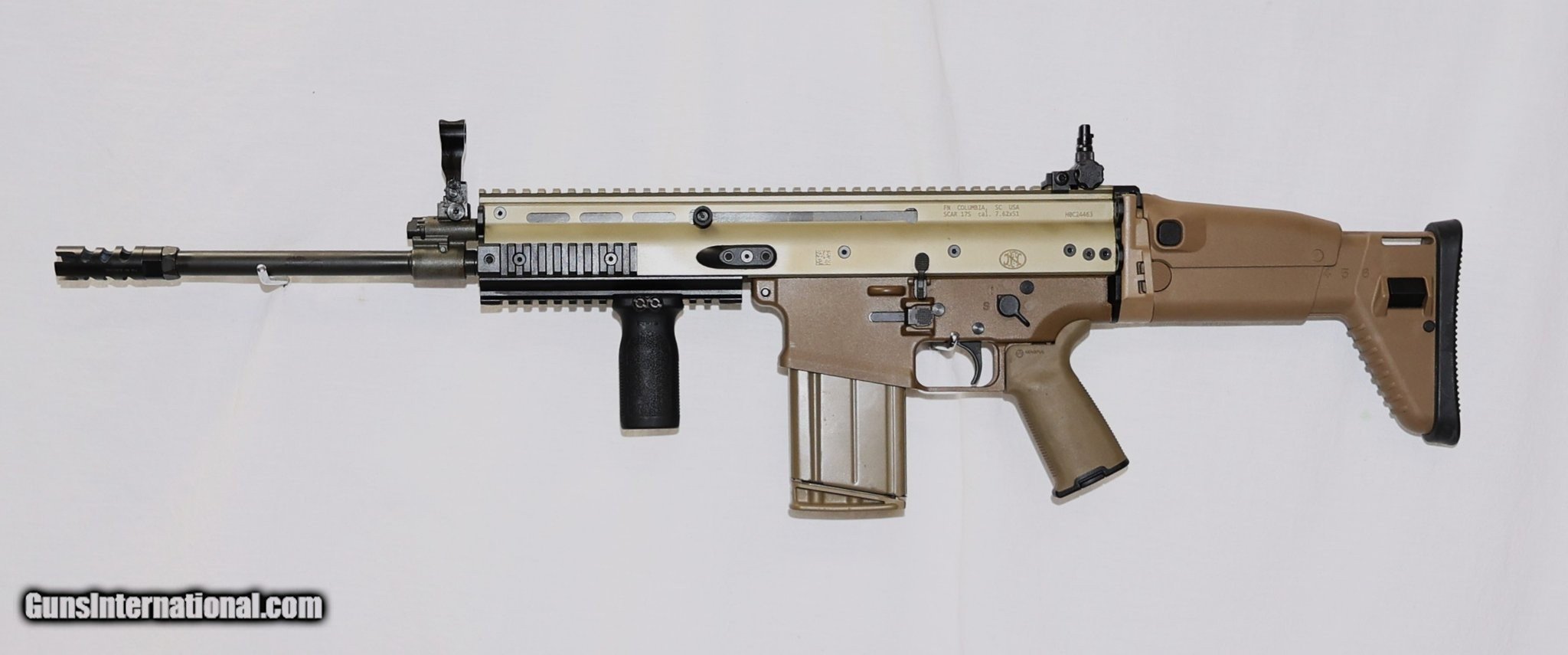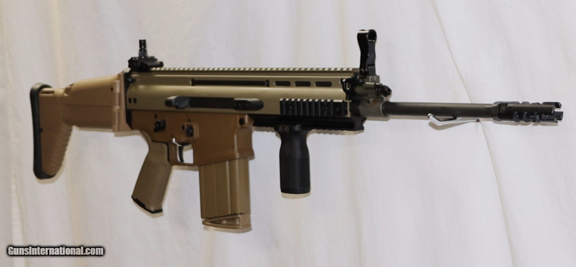 Description: Guns Listing ID: 575720 Pre-owned FN Scar 17S chambered in .308 Win. This rifle is in very good condition. The barrel, frame and upper are in great shape. The metal on the gas block shows some rust coloration. The bore is clean and the action is tight. Overall, this is a great rifle. The legendary FN SCAR 17S is upgraded with Non-Reciprocating Charging Handles. The new, dual charging handles enable any shooting position, grip style or optic choice, user swappable in the field. The FN SCAR 17S ensures any braced or barrier-contact position shoots flawlessly. The rugged, monolithic upper receiver with a full-length MIL-STD-1913 rail provides more space for rail-mounted accessories, and a folding buttstock fits any shooter with adjustable length of pull and cheek rest height. The FN SCAR 17S is the benchmark for accuracy and versatility from a light recoiling, piston-driven platform. They say a picture is worth a thousand words. These photos are the best statement of condition; please review them carefully before purchasing. SOLD Manufacturer: FN Model: SCAR 17S Caliber Info: 7.62X51MM NATO Condition: Used - Non-Certified Barrels: 16.25" BARREL Action: SEMI AUTOMATIC Finish: CERAKOTE FDE |
