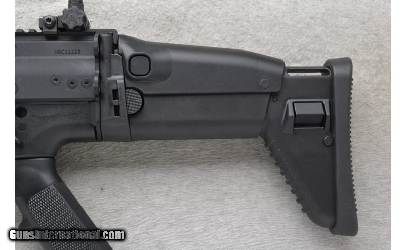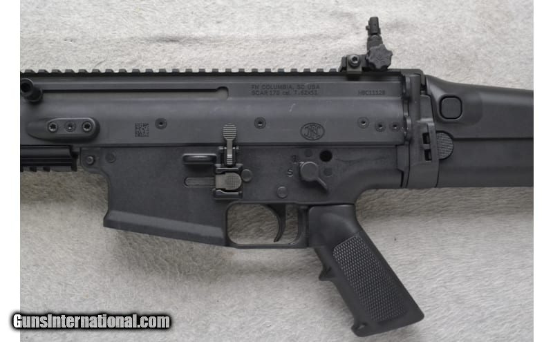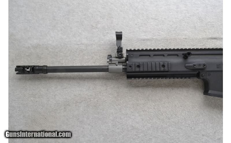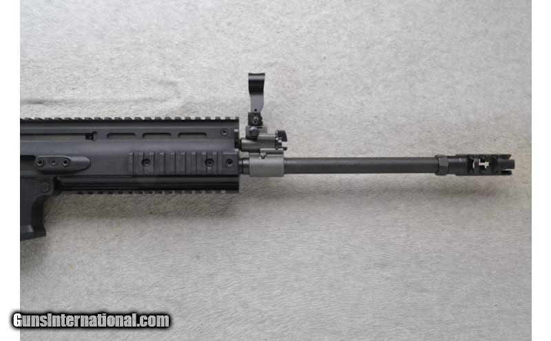 This FN Model SCAR 17S is a right-hand semi auto rifle in 7.62x51mm NATO Cal. It has an 18" barrel with a 1:12 rate of twist and flash hider. It has an adjustable post front sight with hooded protector, adjustable aperture rear sight, and top optic rail. The forearm is black polymer with 3 accessory rails. The adjustable and foldable buttstock has a checkered grip black polymer pistol grip with finger grooves and black rubber buttpad. Please check your local regulations before inquiring to purchase. 7.62x51mm NATO 7.62x51 NATO