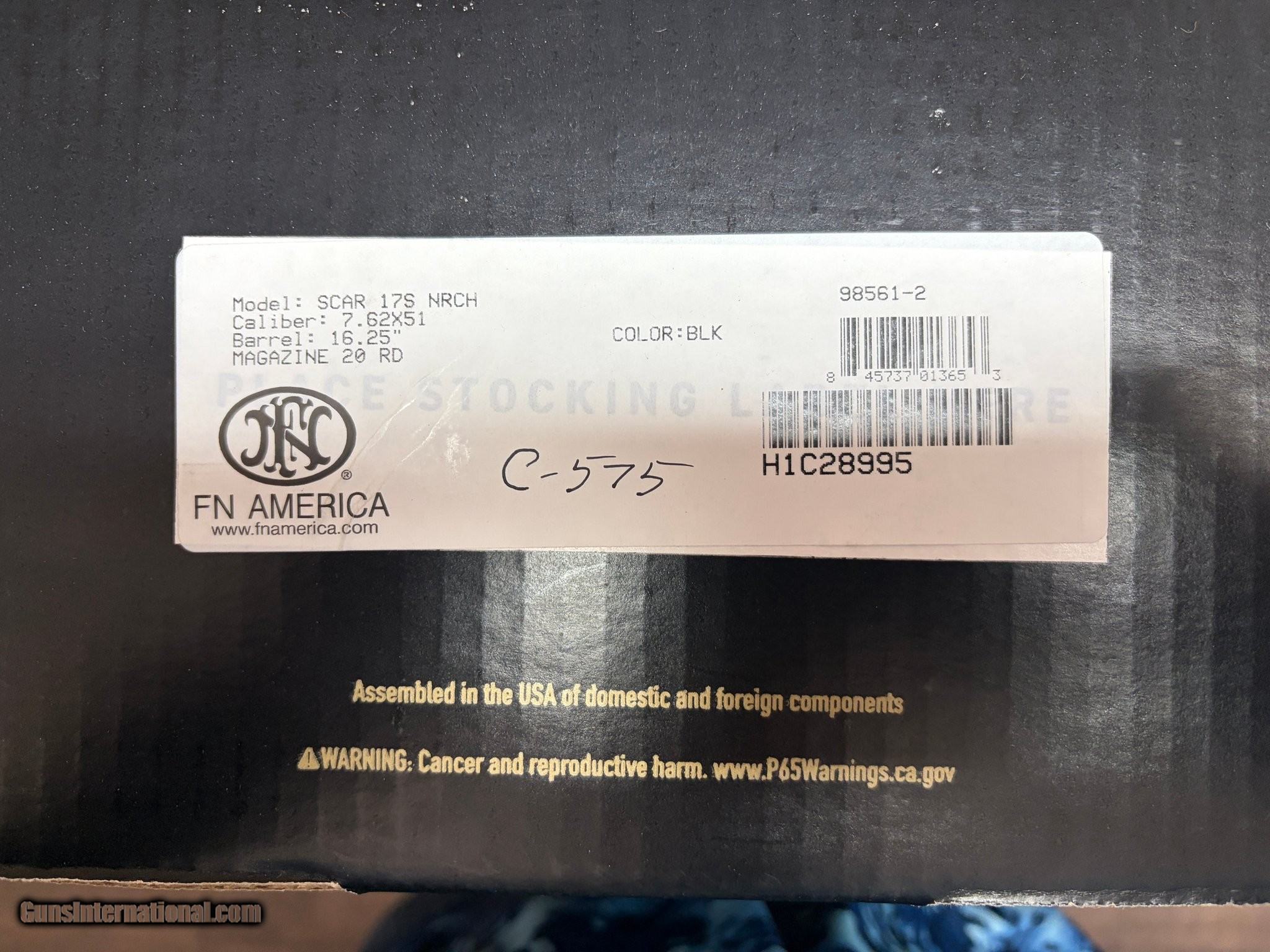 Description: Guns Listing ID: 619955 This is a Brand NEW Firearm. Straight from factory never fired. Gun comes with all original Box, Mag, and Scar Paperwork. Now discontinued to the Civilian market as of October 2025 the supply of these are dwindling fast. Offering this Unit to the consumer at whole sale pricing. This is my last unit and won’t get more. Manufacturer: FN Model: SCAR 17S NRCH 7.62 Caliber Info: 7.62X51MM NATO Condition: Used - Non-Certified Barrels: 16.25" BARREL Action: SEMI AUTOMATIC Finish: MATTE BLACK Weight: 8.1 lbs. Price: $3,599.99 Contact Seller |