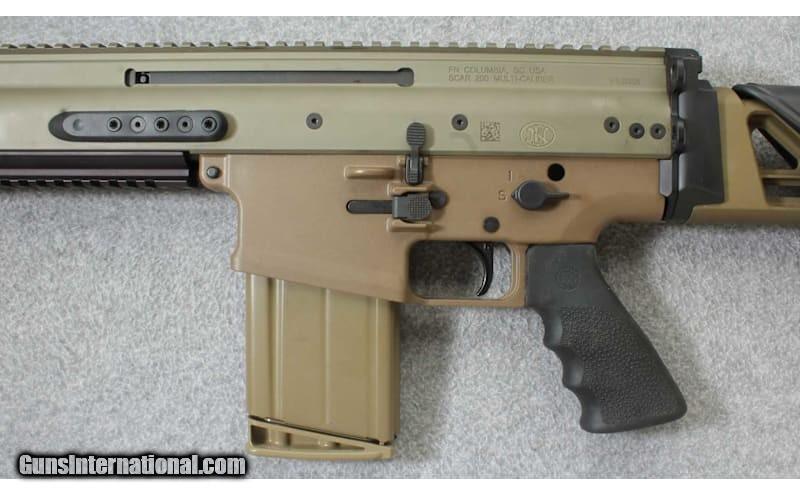 Description: Calibrated for long range, the FN® SCAR® 20S Semi-Auto Rifle delivers surgical precision with an enhanced set of controls that let you use any shooting position or your optic of choice. Its short-stroke, gas-driven piston platform, complete with a highly accurate and proven design, excels at target shooting and law-enforcement applications. Equipped with a cold-hammer-forged, chrome-lined, free-floating, heavy-contour barrel and a Geissele trigger. The hard-anodized monolithic aluminum receiver sports full-length MIL-STD-1913 rails at the 3, 6, 9, and 12 o'clock positions, providing more space for rail-mounted accessories. Operating controls include dual, ambidextrous charging handles that remain static under fire and can be swapped between left and right; ambidextrous safety level and magazine release; an enlarged trigger guard for easy access with gloves; and a composite polymer trigger module. The precision buttstock fits any shooter thanks to adjustable length of pull and cheek rest height. Hogue® rubber grip with finger grooves provide a solid hold. 6.5 Creedmoor SOLD Metal Condition: Excellent Bore Condition: Excellent Barrels: 20 inch threaded barrel Stock Dimensions: Adjustable Butt Pad: Rubber pad Weight: 11 Lbs. 5 Oz. Sights: Rail for mounting optic Item Location: Lehi, UT |