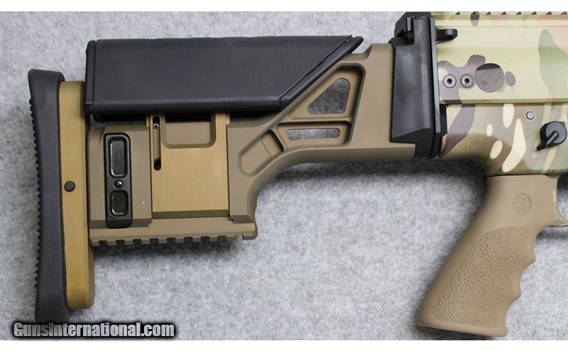 Description: 7.62x51mm SOLD Metal Condition: Excellent Bore Condition: Bright and Shiny with Strong Rifling Barrels: 20" with Flash Suppressor Triggers: SA Stock Dimensions: 13.75" LOP Fore End: Textured Desert Tan / Multicam Camo Composite Butt Pad: Black Rubber Sights: Picatinny Rail Item Location: Allen, TX |