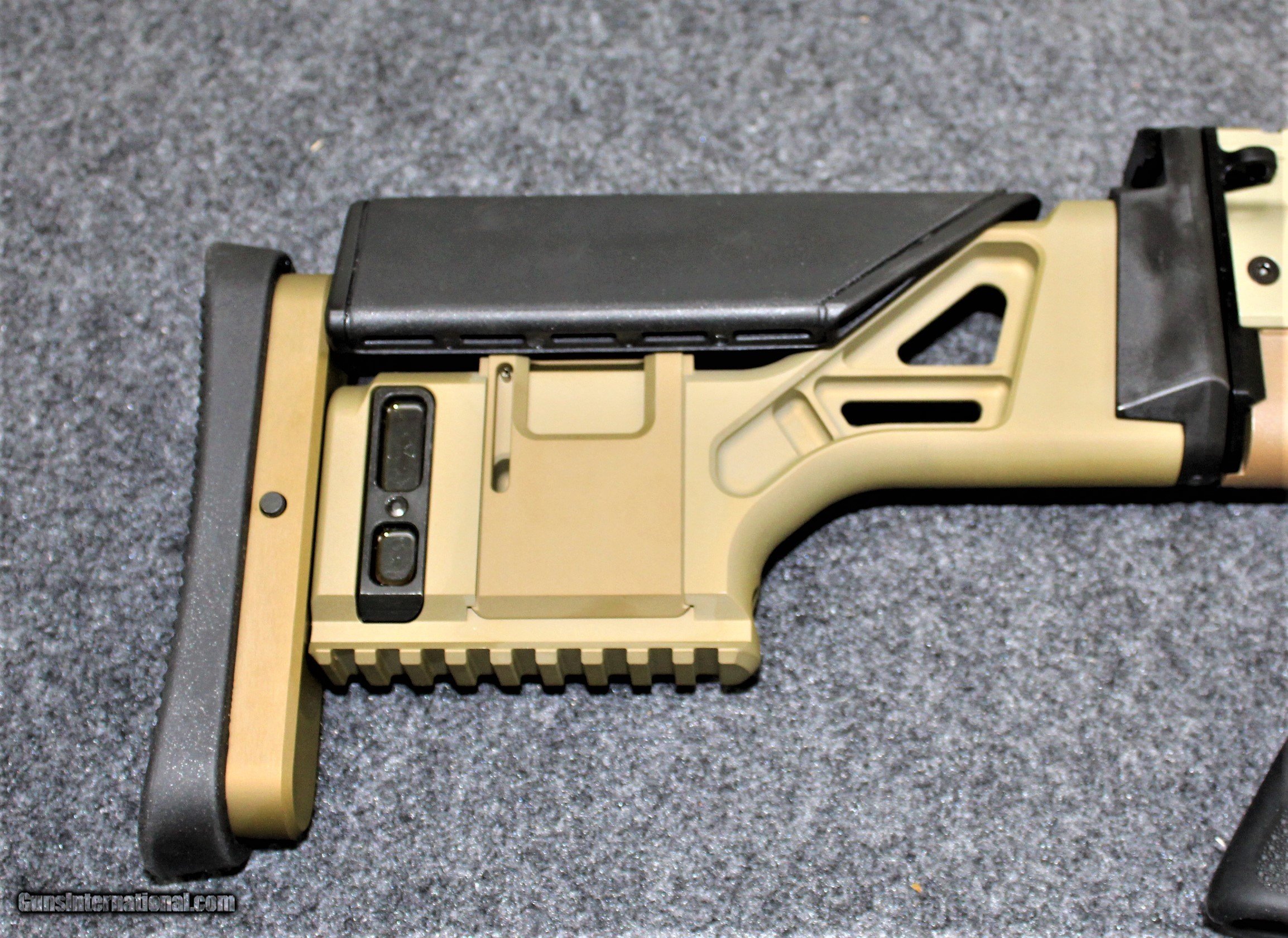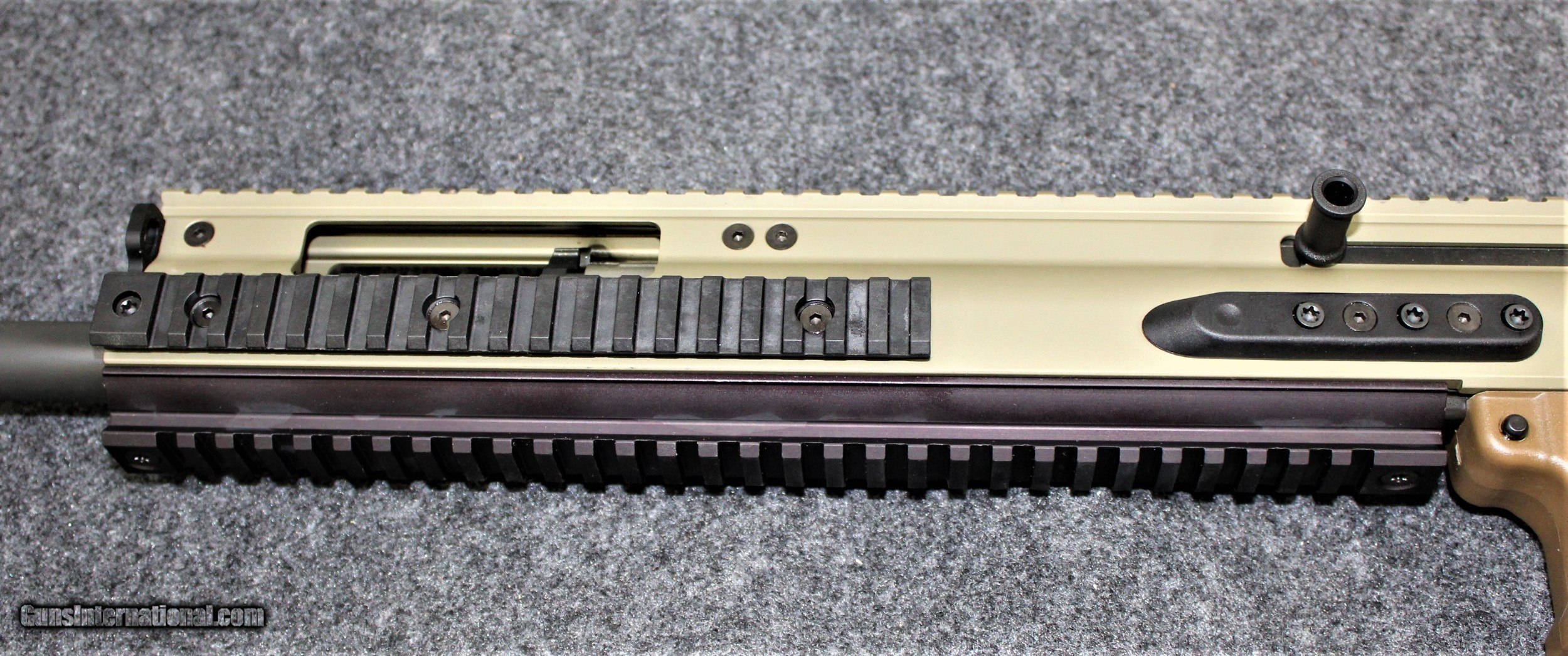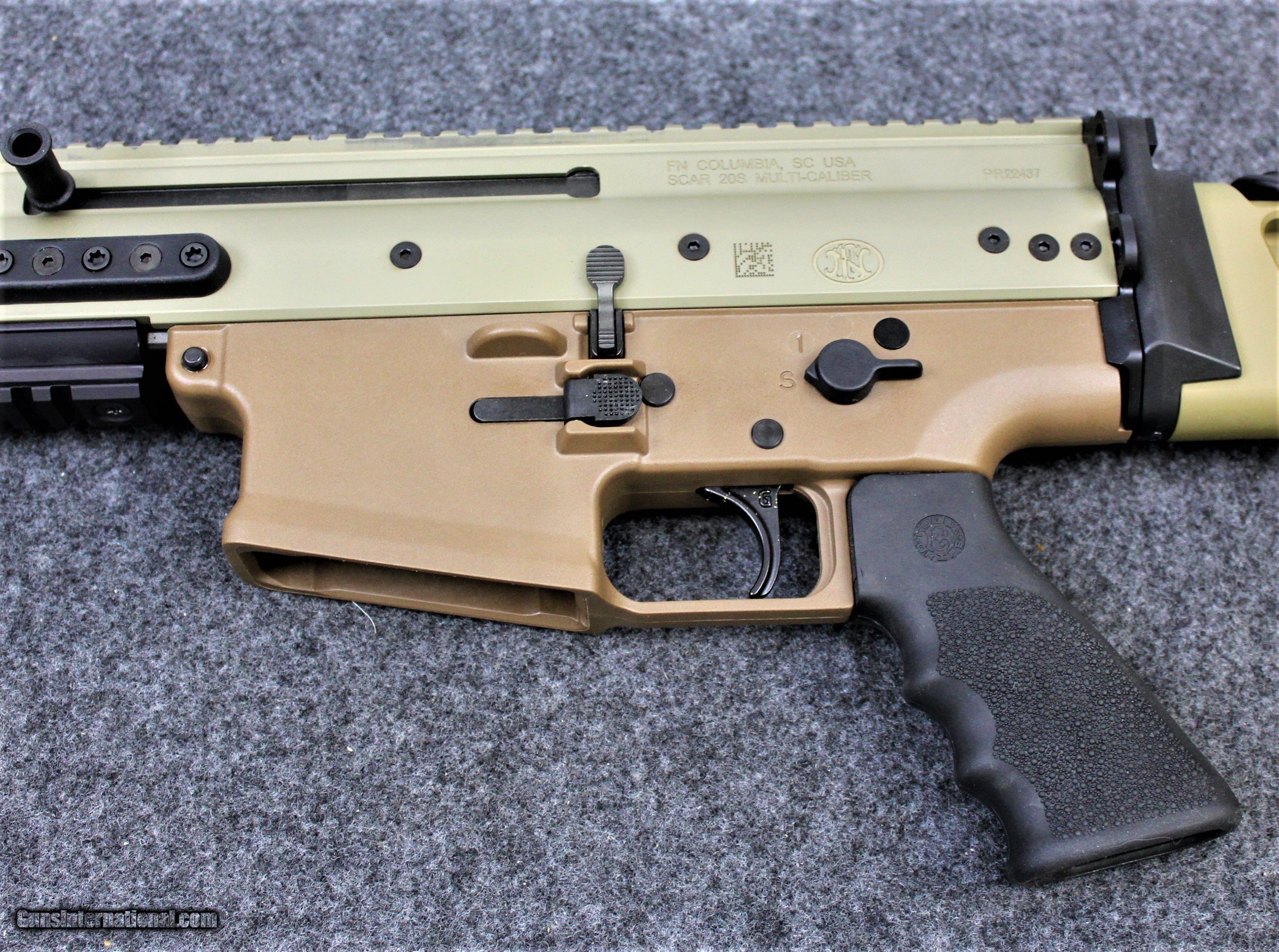 Description: Presenting a New In The Box Consignment FN Scar Model 20S in caliber .308 Winchester. The firearm comes with the factory box and paperwork. This is a unfired FN Scar 20S. SOLD Rifle Caliber: .308 Winchester Manufacturer: FN Model: Scar 20S Serial Number: PR22437 Condition: Excellent Metal Condition: Excellent Bore Condition: Excellent Action: Semi-Auto Triggers: Single Stock: Adjustable Butt Pad: Black Rubber Finish: Black/Sand Item Location: H & H Shooting Sports |