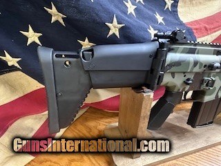Description: NEW FN SCAR The legendary FN SCAR® 17S is upgraded with Non-Reciprocating Charging Handles, and available in woodland pattern as a limited edition. The new, dual charging handles enable any shooting position, grip style or optic choice, user swappable in the field. The FN SCAR 17S ensures any braced or barrier-contact position shoots flawlessly. The rugged, monolithic upper receiver with a full-length MIL-STD-1913 rail provides more space for rail-mounted accessories, and a folding buttstock fits any shooter with adjustable length of pull and cheek rest height. The FN SCAR 17S is the benchmark for accuracy and versatility from a light recoiling, piston-driven platform.