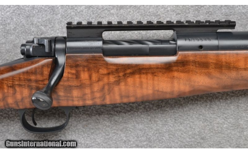 Description: Nicely done custom (Gunsmith unknown) built on an FN Special Police Action with spiral fluted bolt. Barrel make is unknown. Barrel shows a spot of blue wear on the underside at the muzzle. Bore is excellent. Wood shows a few light handling marks and also remains excellent. Complete with Forester reloading dies and scope base. SOLD Manufacturer: S/N FN19XXX Caliber Info: 6.5x47 Lapua Metal Condition: Excellent Wood Condition: Excellent Bore Condition: Excellent Barrels: 24 Triggers: FN Stock: Uncheckered Walnut Pistol Grip with Ebony Cap Stock Dimensions: 13 1/2" LOP Fore End: Uncheckered Walnut with Ebony Cap Butt Pad: Black Rubber Butt Pad Weight: 8 1/2 LB Sights: None-Scope Base Included Item Location: East Grand Forks, MN |
