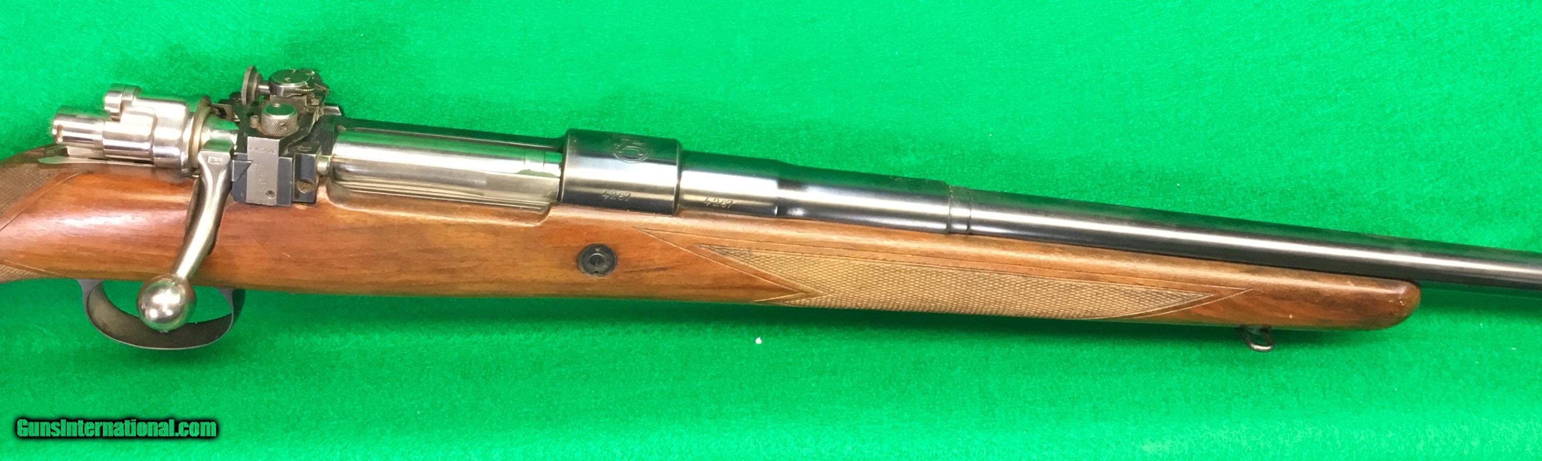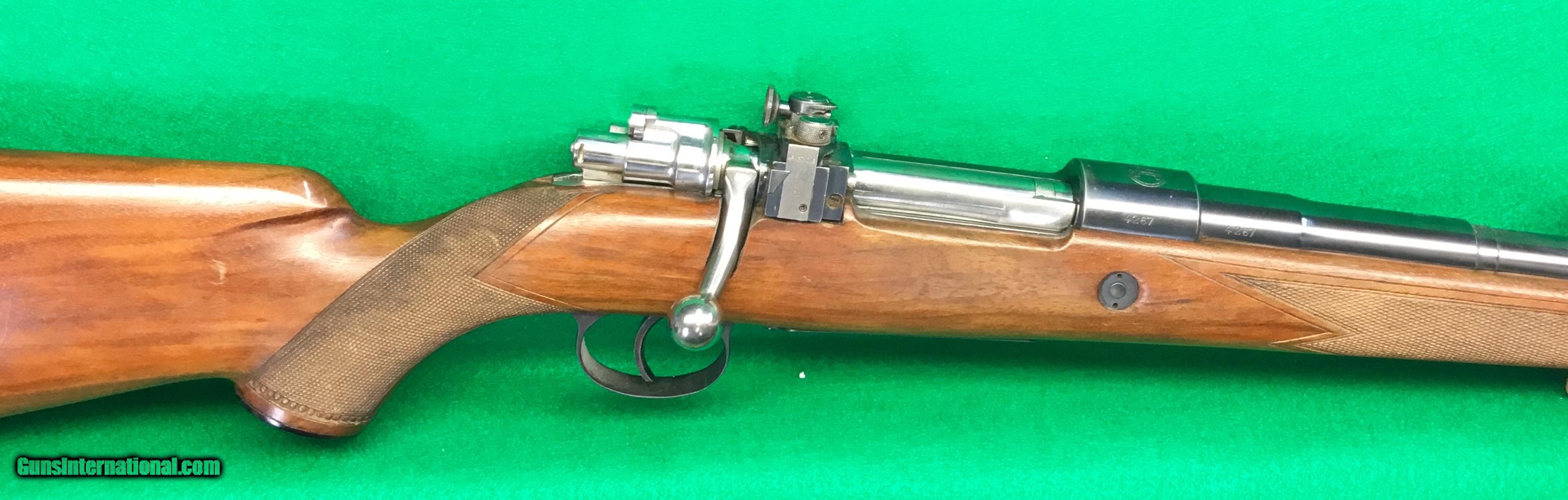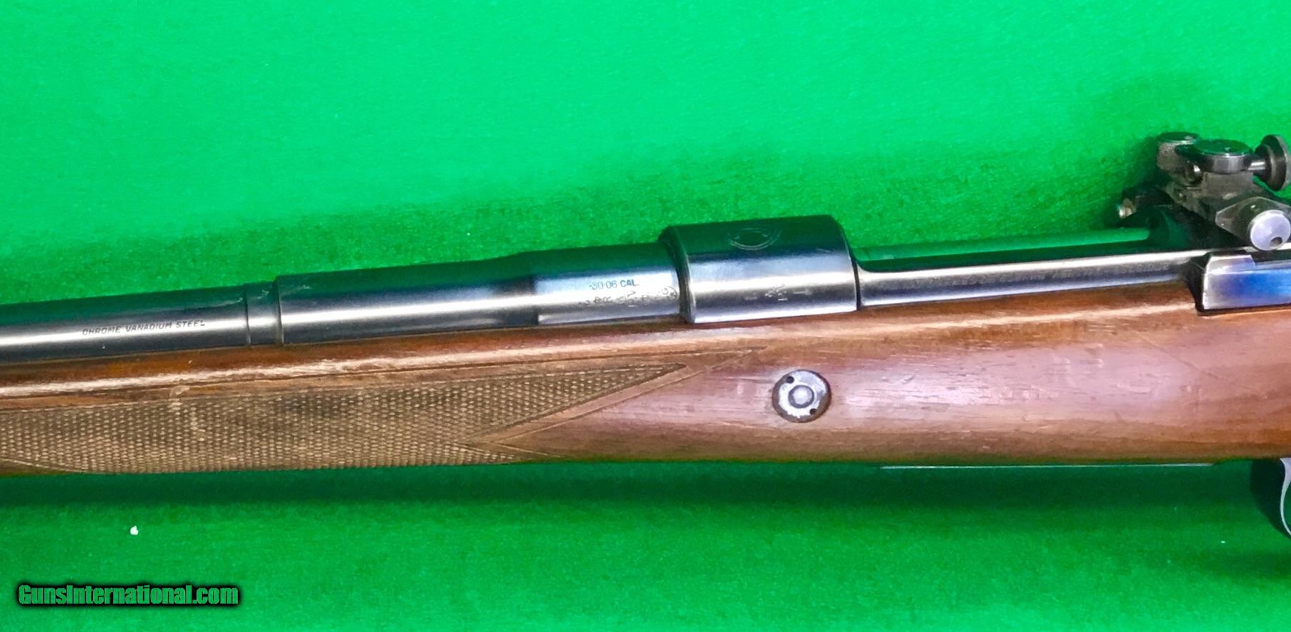 Description: Hard to find an unaltered FN Supreme rifle. This 30-06 was never drilled and tapped for scope use. It does have a very cool Armstrong dual setting receiver sight, presumably set for 100 and 200 yards? Photos show condition better than I can describe it. Perfect bore. $698 plus $38 insured shipping. Lay-a-way available, no credit cards and no trades. C&R ok. Be sure to check out my other listings. SOLD Curio/Relic: Yes |