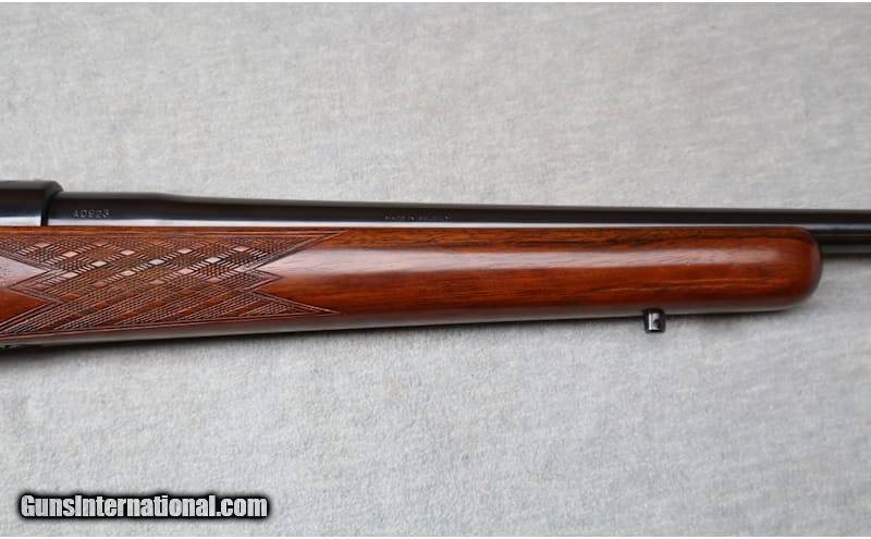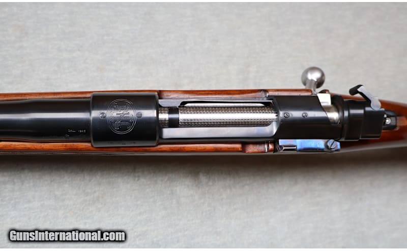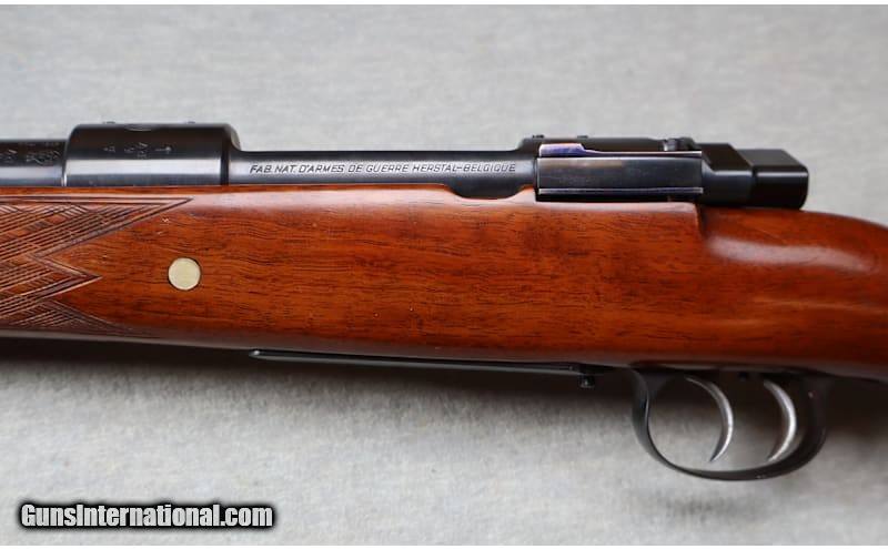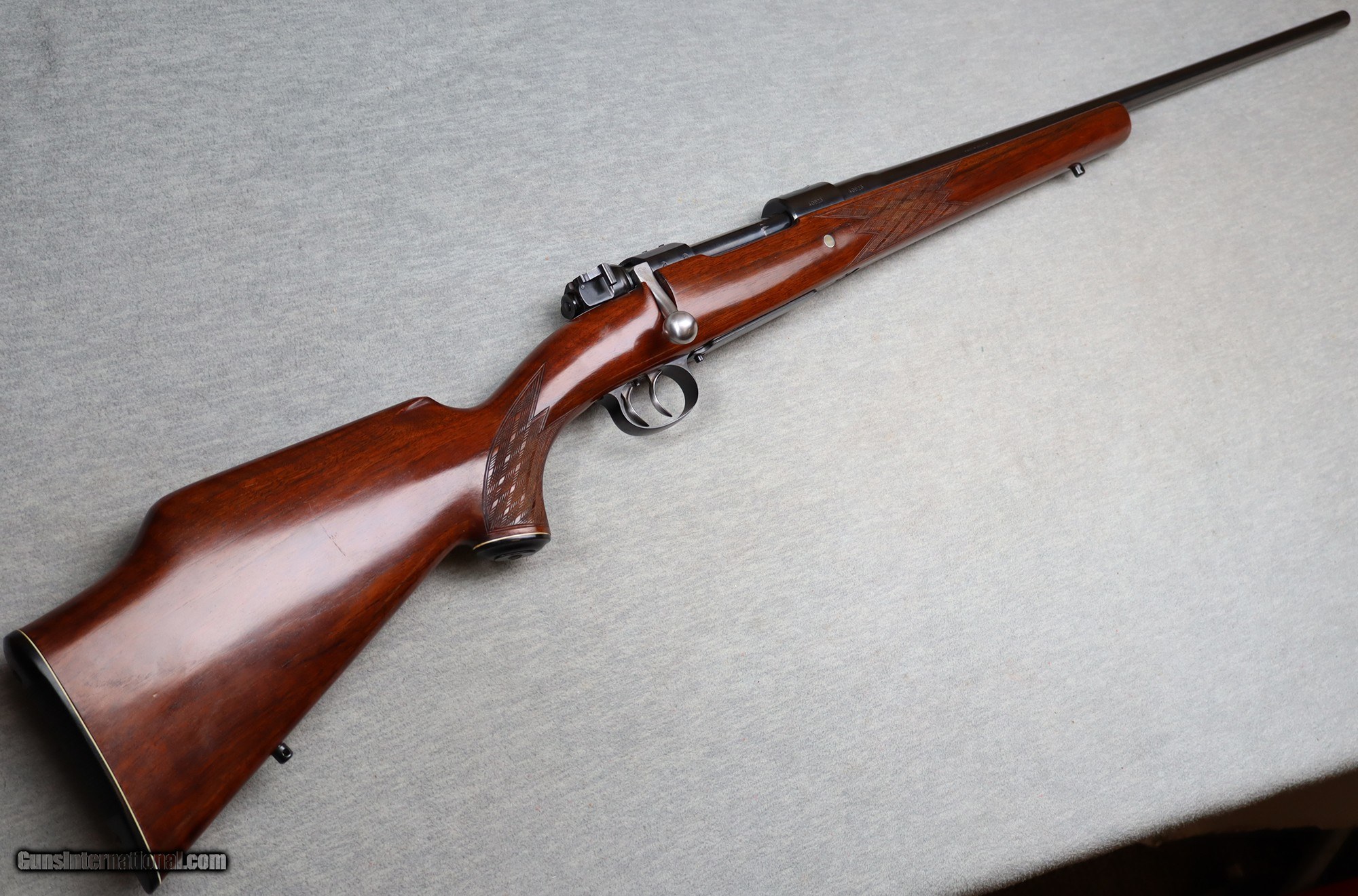 Description: FN SUPREME SPORTER BOLT ACTION RIFLE Cal. 243 Win. S# 40923. Mfg. 1957-1975; this rifle appears to be mfg. early in production. Tapered 24" bbl. Drilled & tapped for scope bases & receiver sight base. Receiver sight has "FN" logo. 98 Mauser action w/ double set triggers. Skip-line checkered, Monte Carlo, cheekpiece, walnut stock. CONDITION: very good to near excellent blue. Very good wood finish with minor handling marks. Very good bore. .243 Winchester Metal Condition: very good Wood Condition: very good Bore Condition: bright Barrels: 24" barrel Triggers: double set trigger Stock Dimensions: 14 Fore End: wood Butt Pad: plastic Weight: 7 lb - 2 oz Sights: none Item Location: La Vista, NE Price: $1,299.99 Contact Seller |