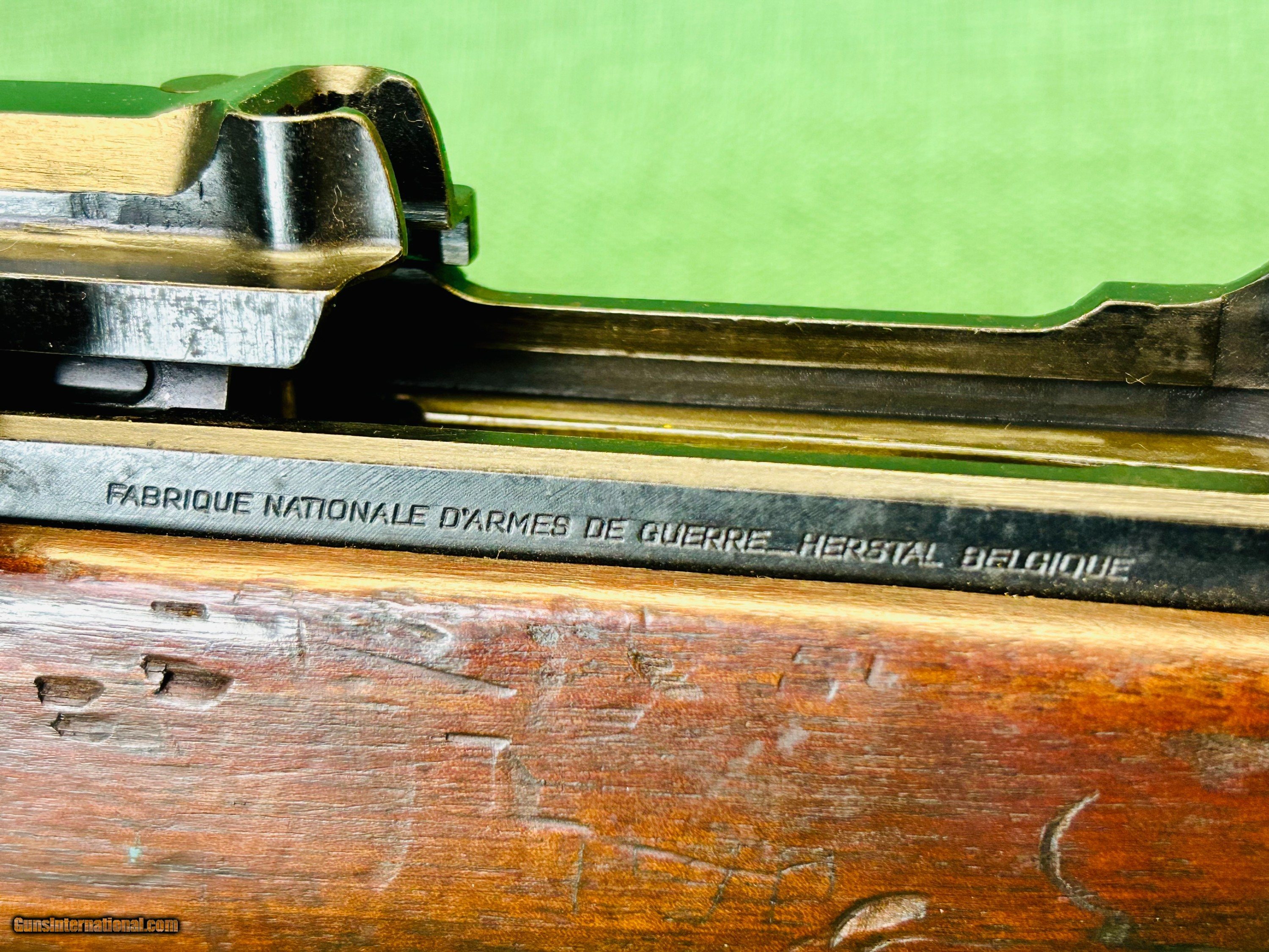 Description: Price Reduced This FN49 is an excellent piece. It is one of 8,003 known. This rifle is found to be matching numbers with no visible import marks. Venezuelan Crest is stamped on receiver; right side is stamped, "FABRIQUE NATIONALE D'ARMES DE GUERRE - HERSTAL BELGIQUE." It is believed the Venezuelan FN49 is the only semi-auto rifle ever produced to fire the 7x57 Mauser rifle cartridge. Original finish is in excellent condition for its age and use. Stock cartouches are very sharp and very clear. Stock does display various handling and storage marks as typically seen on military surplus pieces. Barrel displays threaded muzzle with no muzzle break. Bore condition is strong and shiny. We accept USPS Money Order or cashier’s check for immediate shipping. Shipping costs are actual postage, adult signature required, to your FFL 01 or 03. We will pay the insurance for the amount sold. All items are for sale locally, so make contact as soon as you make your decision. SOLD Curio/Relic: Yes Rifle Caliber: 7x57mm Mauser Manufacturer: FN Model: 49 |