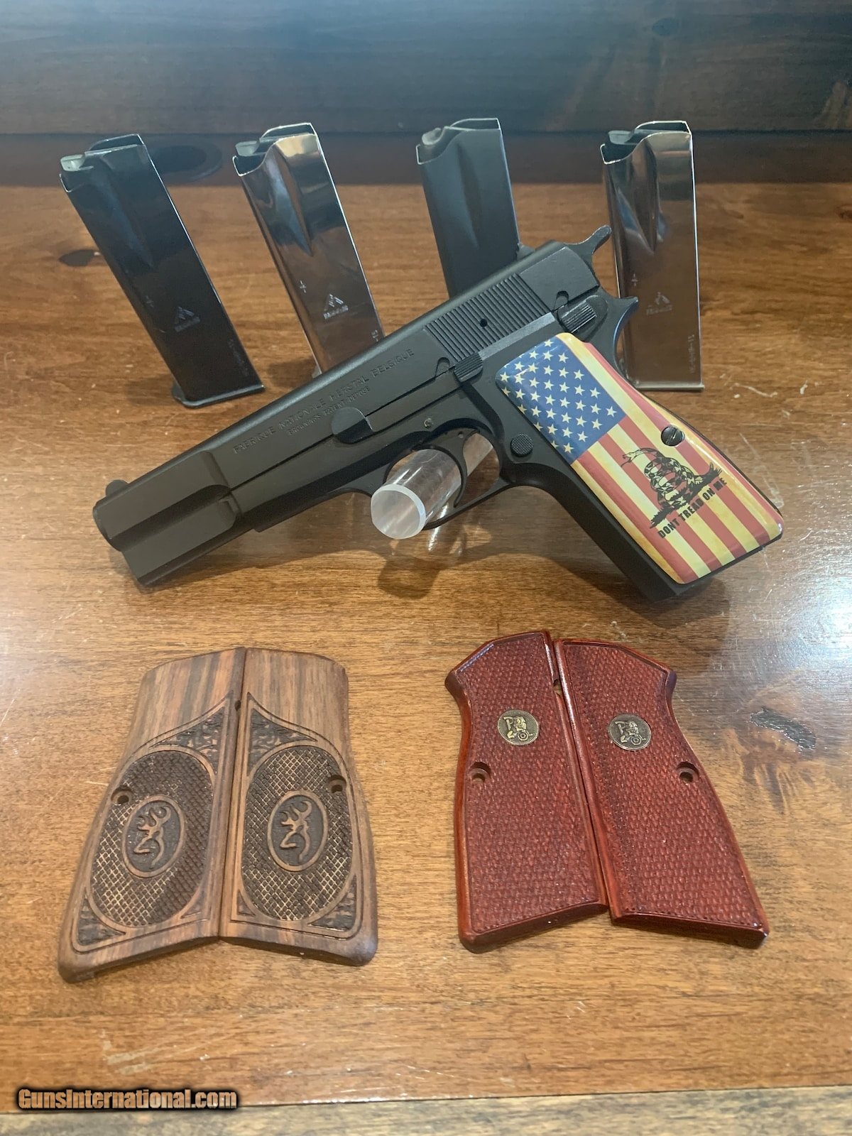 Description: Guns Listing ID: 382009 Dated 1982. Comes with 4 magazines and 2 extra sets of grips. Excellent for any collection, everyday carry, home defense, or plinking. SOLD Manufacturer: FNH Model: HP/GP Caliber Info: 9 MM Condition: Used - Non-Certified Barrels: 5 BARREL Finish: BLUE |