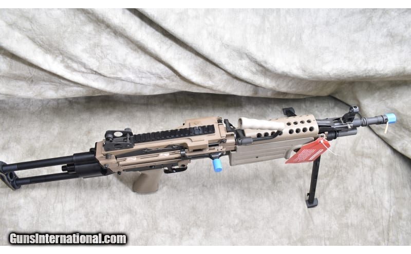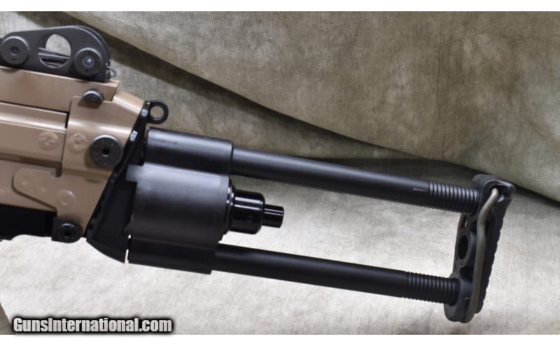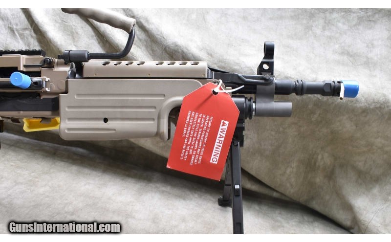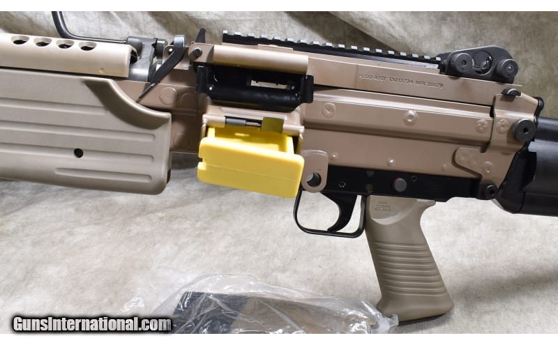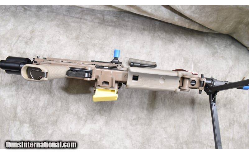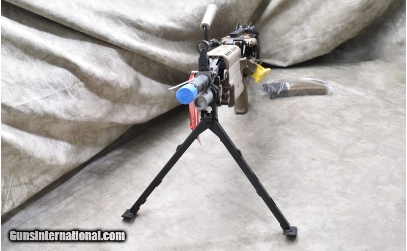 Description: Designed as a semi-auto version of the FN M249 SAW, This is a closed-bolt firing autoloader, featuring peep and post sights, a picatinny rail, carry handle, and two forms of ammo feed. This one is tan plastic and metal coating. It has a bipod and is New, In the Box. 5.56x45mm NATO SOLD Chambers: 30-round magazine or 200-round belt. Metal Condition: NIB Wood Condition: NIB Barrels: 18.5 inch barrel with 1:7 twist. Triggers: Factory trigger Stock Dimensions: 15.5 inch LOP. Fore End: Tan plastic with heat shield. Butt Pad: Plate. Weight: 17.6 LB. Sights: "Guarded post and peep military sights, Rail mount for optics. Item Location: Rogers |