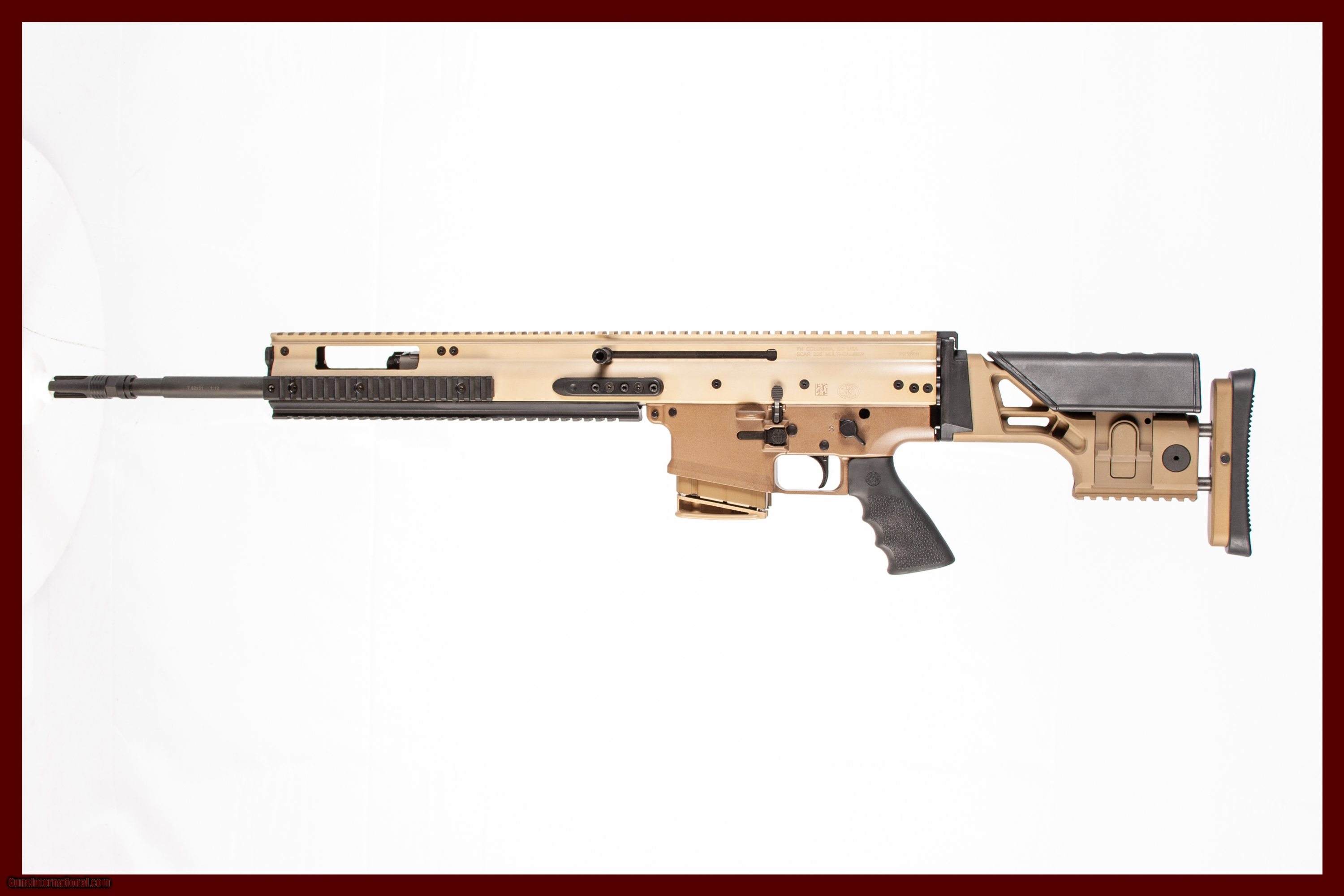 Description: FNH SCAR CHAMBERED IN 7.62X51 WITH A 20 INCH BARREL BRIGHT BORE AND GOOD GROOVES. THIS GUN IS IN EXCELLENT CONDITION AND IS COVERED BY DURY'S LIFETIME WARRANTY.