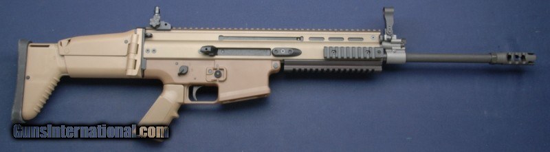 Description: Experience the long-range accuracy, downrange power, exceptional reliability and match winning versatility of the FN SCAR 17S, the semi-auto only version of the U.S. Special Operations Command's newest service rifle. Chambered in 7.62x51mm, the FN SCAR 17S features a free-floating, cold hammer-forged MIL-SPEC barrel with hardchromed bore. Fully-ambidextrous operating controls instantly adapt the FN SCAR 17S to any user or any shooting position. The receiver-integrated MIL-STD-1913 optical rail plus three accessory rails enable mounting of a wide variety of scopes, electronic sights, tactical lights and lasers. The telescoping, side-folding polymer stock is fully adjustable for comb height and length of pull, making it ideal for Heavy Metal 3-Gun matches. Hard find these on the loose. This one is brand new. Comes in a super nice Storm hard case with two 20 round magazine kits and all factory inserts. $75 shipping to the lower 48, 3% surcharge for using a CC. If you pay with a personal check, you can expect us to hold the item for up to 10 days to ensure that the check clears. SOLD Rifle Caliber: .308 Winchester |