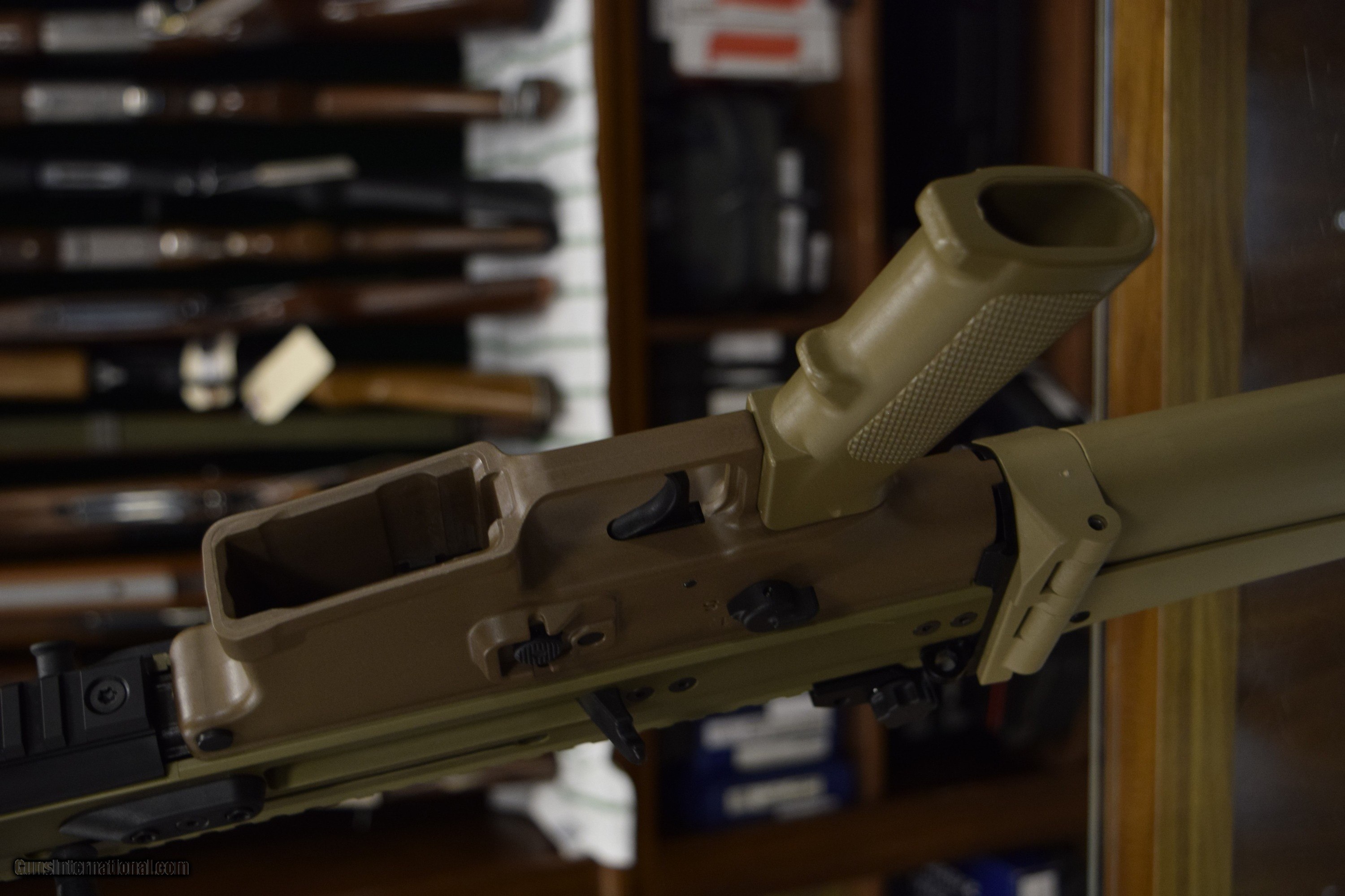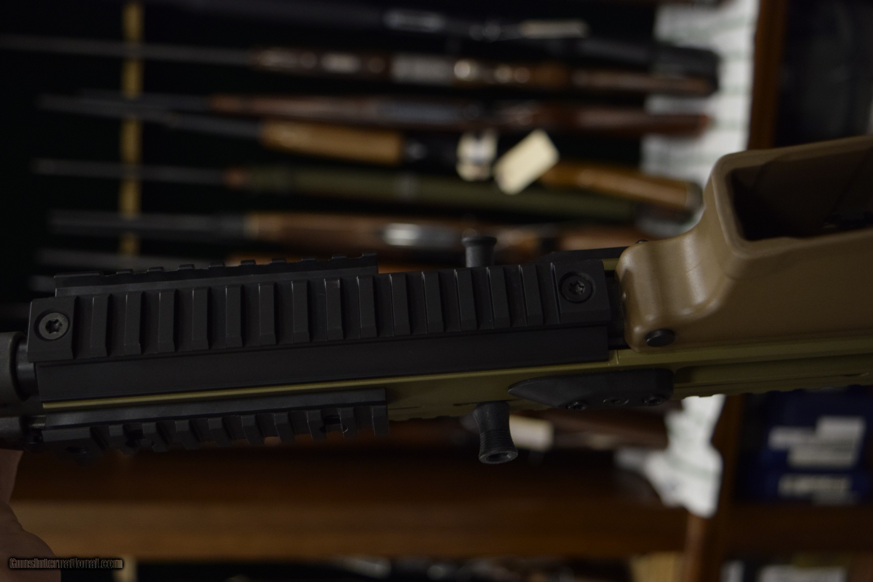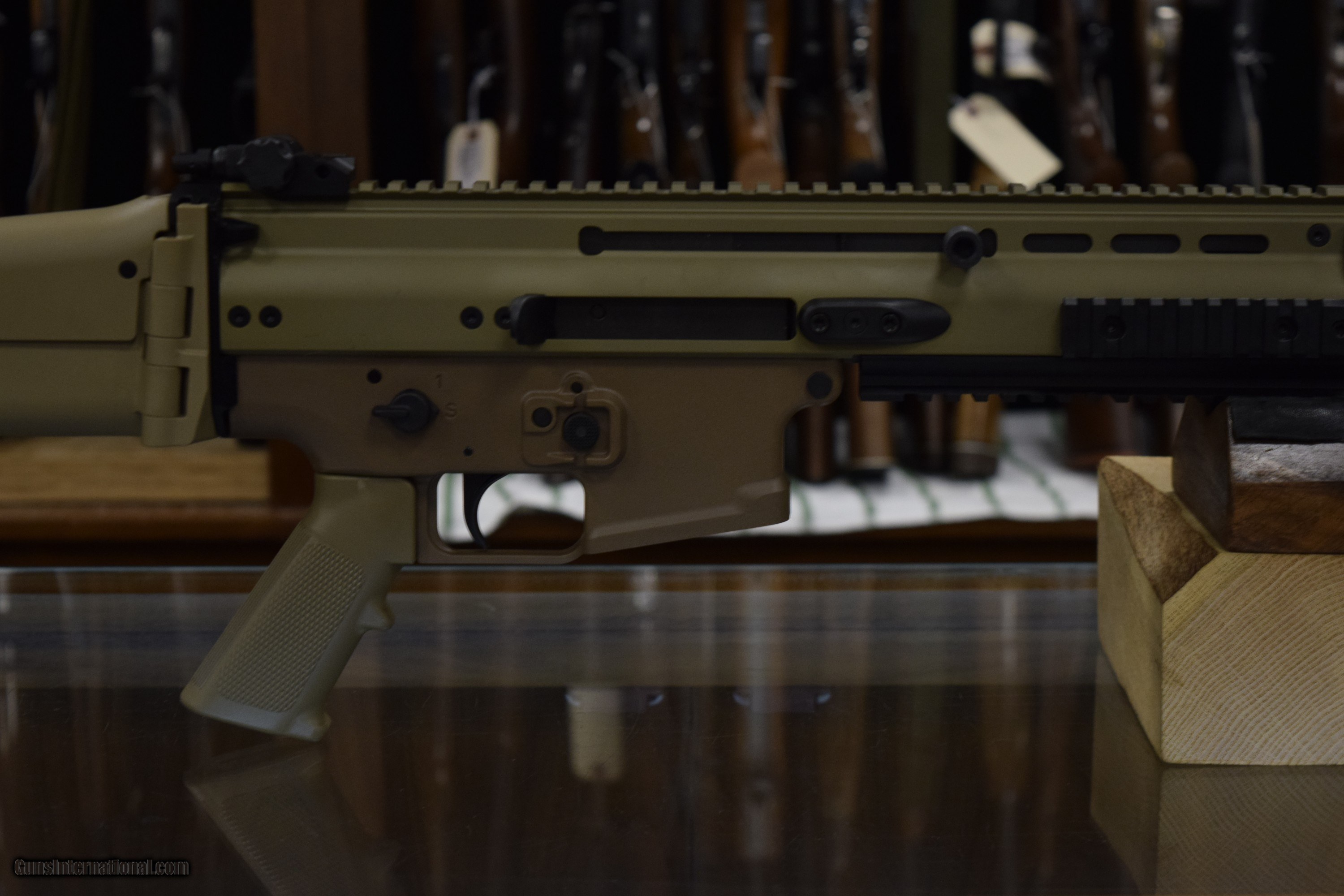 Description: The fast-handling and quick-shooting FN SCAR® 16S is upgraded with Non-Reciprocating Charging Handles. The new, dual charging handles enable any shooting position, grip style or optic choice, ensuring any braced or barrier-contact position shoots flawlessly. A rugged, monolithic upper receiver with MIL-STD-1913 rail provides space for rail-mounted accessories, and a folding buttstock fits any shooter with adjustable length of pull and cheek rest height. The FN SCAR 16S in 5.56x45mm is the benchmark for reliability and versatility from a light recoiling, piston-driven platform. This item is in great condition. It comes with the original box with 1 magazine. FN SCAR 16S NRCH 5.56x45 16.25" 10RDS FDE