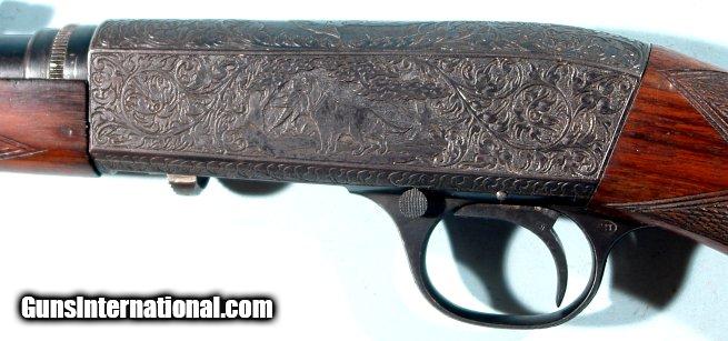 RARE EXHIBITION GRADE FACTORY ENGRAVED EARLY FN BROWNING PATENT 22 LR SEMI-AUTO CARBINE CIRCA 1922.