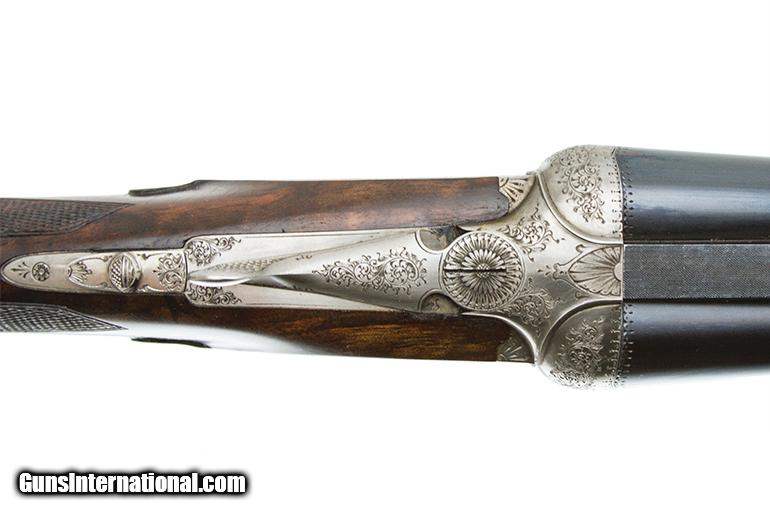Description: MADE FOR JOHN MALTESE WITH THE MATESE FALCON ON THE BOTTOM OF THE RECEIVER ENGRAVED BY SMETS 24" BARREL WITH A 3 LEAF EXPRESS SIGHT DOUBLE TRIGGER EJECTORS SPLINTER FOREARM PISTOL GRIP ENGRAVED TRAP DOOR PISTOL GRIP WITH EXTRA SIGHT AND AND A TRAP DOOR THAT IS ENGRAVED IN THE BUTT STOCK LEATHER MAKERS CASE NEW CONDITION 8LB 6 OZ X 15" LOP SOLD |