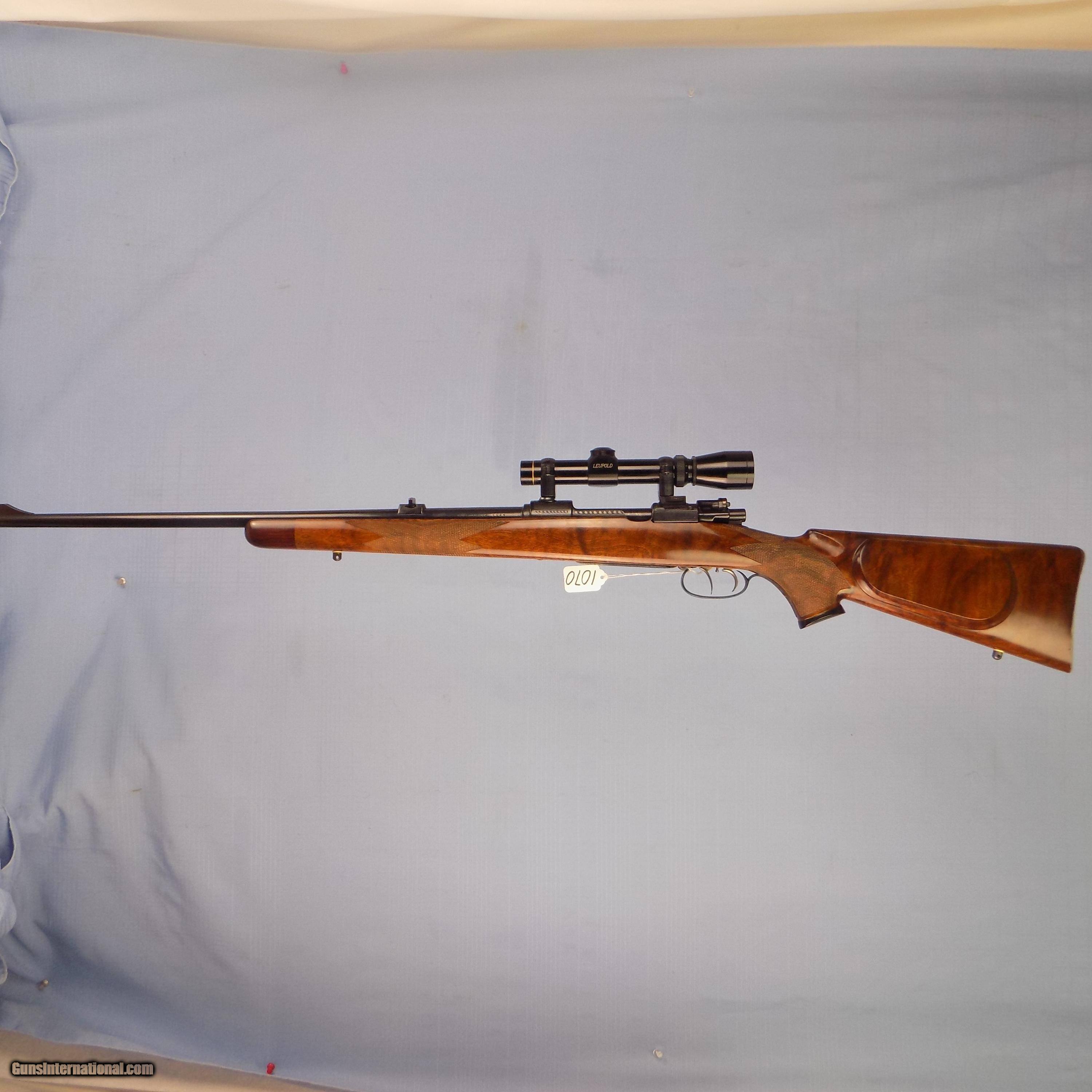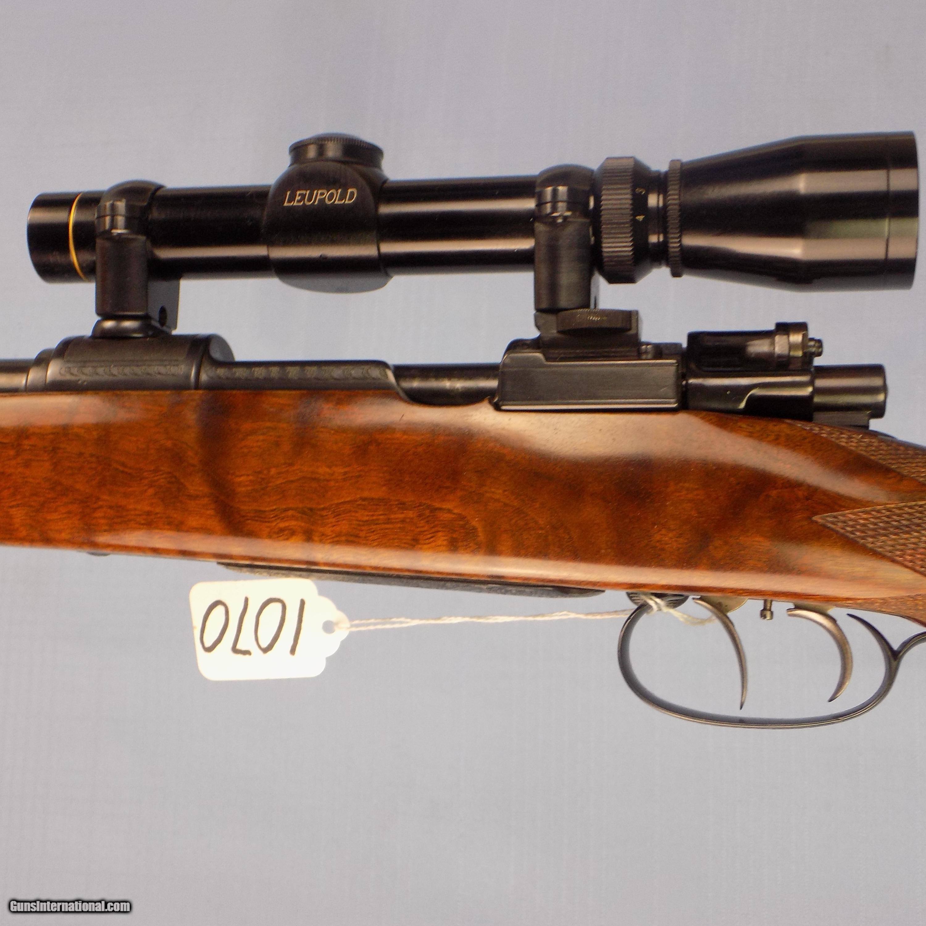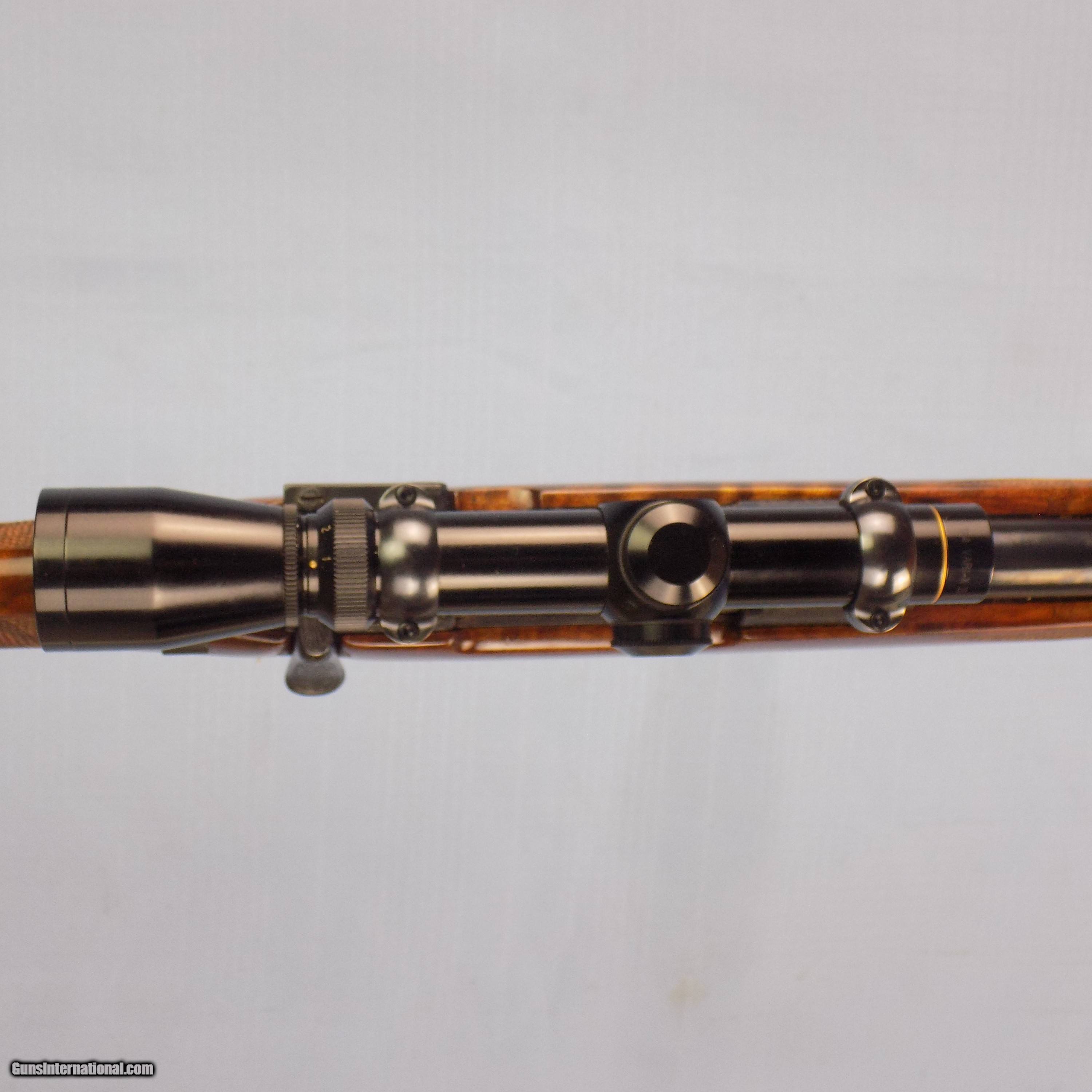 Description: #1070 FRANZ SODIA BA HUNTING RIFLE, 6.5 X 57, SN 11XX, 24” bbl., factory engraved, DST, trap in buttplate for extra cartridges, sling swivel eyelets, checkered burl wood stock with cheek rest, Rosewood PG cap & forend tip, quick release floor plate is heavily engraved with game scene, open sights, Leopold 1-4X scope & claw mounts, exc. bore, in mint condition, 14 1/4” LOP. $2800 FFL required SOLD Curio/Relic: Yes |