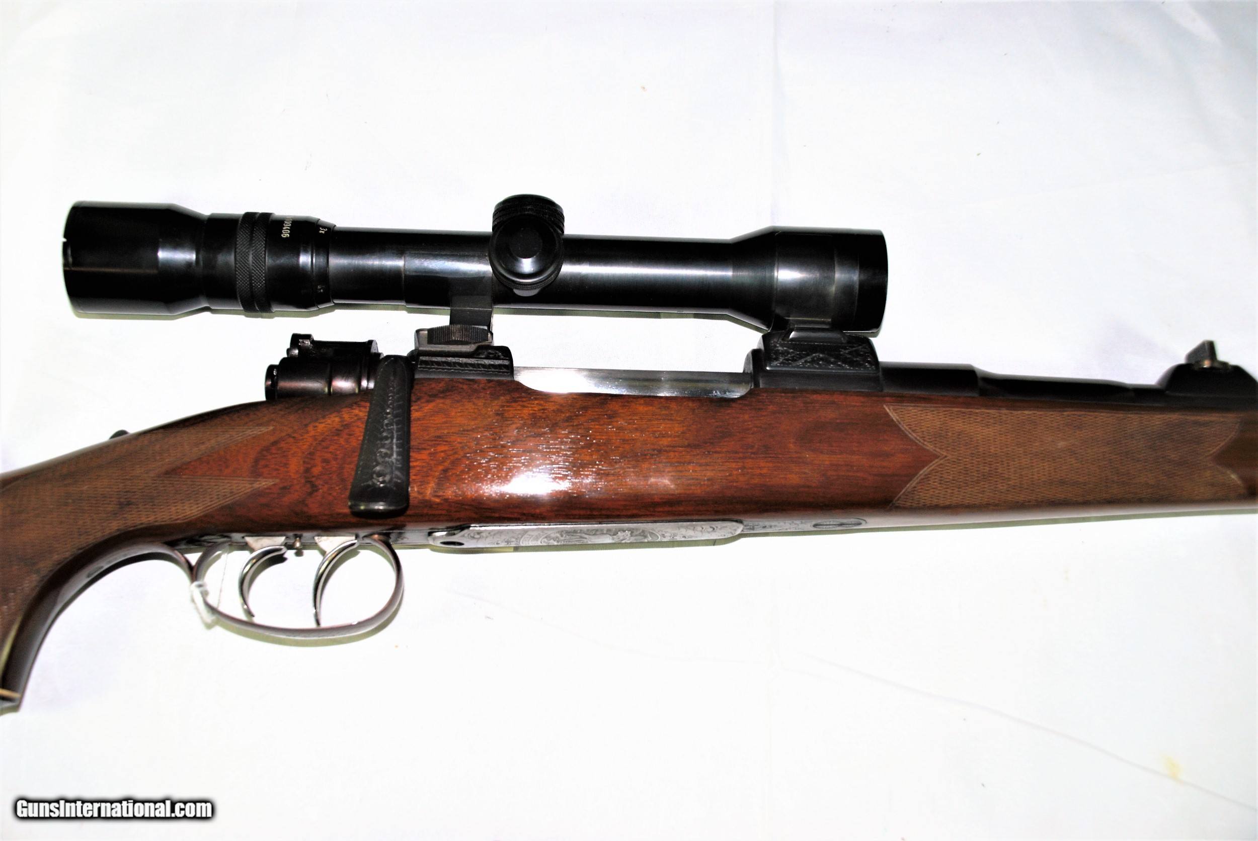 Description: Franz Sodia Model 300L .308win Outstanding condition Hand Engraved Factory mounted Kahles 2x7 Optics Pad Marked Franz Sodia Everything as Shipped from Factory SOLD |