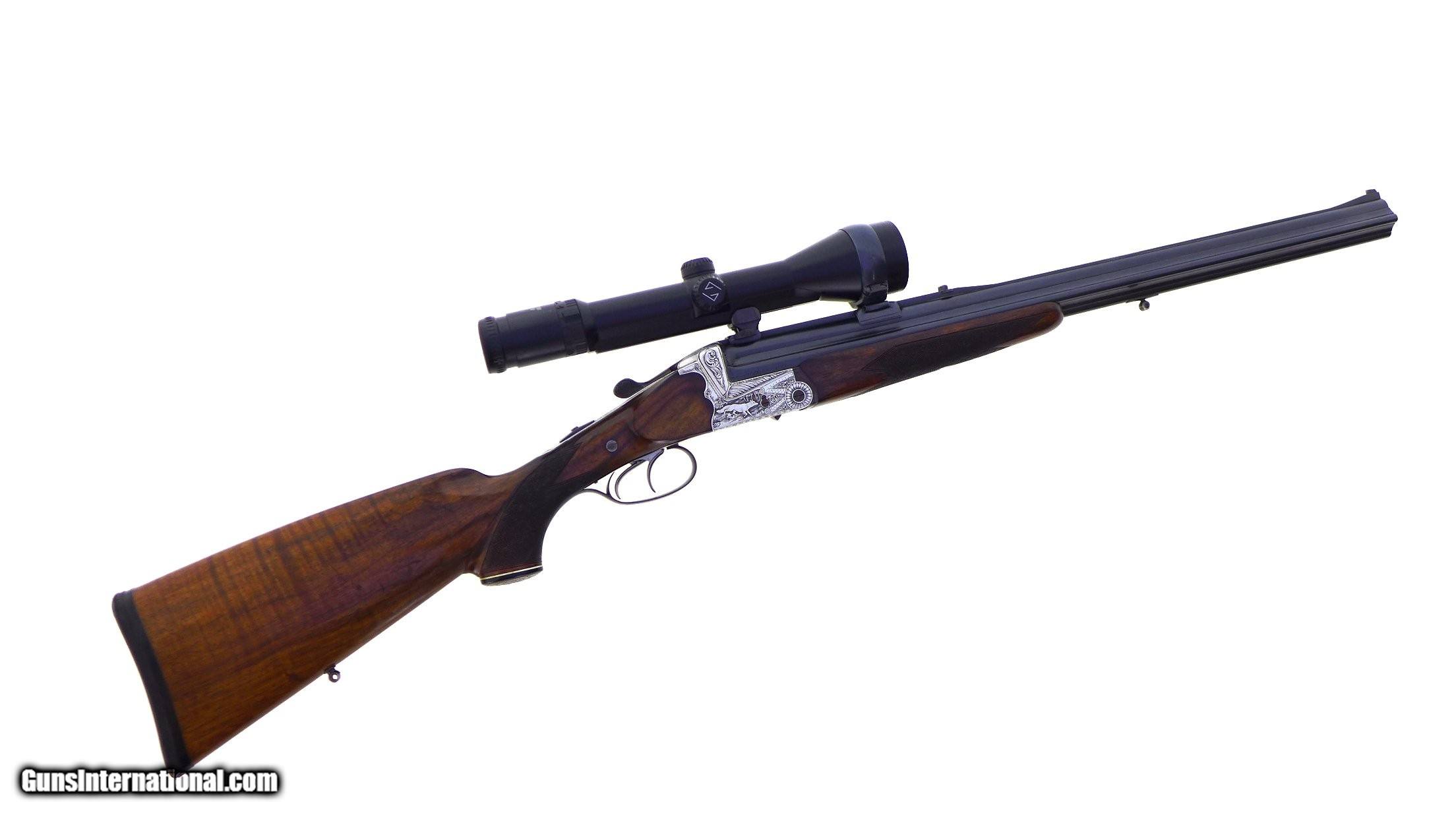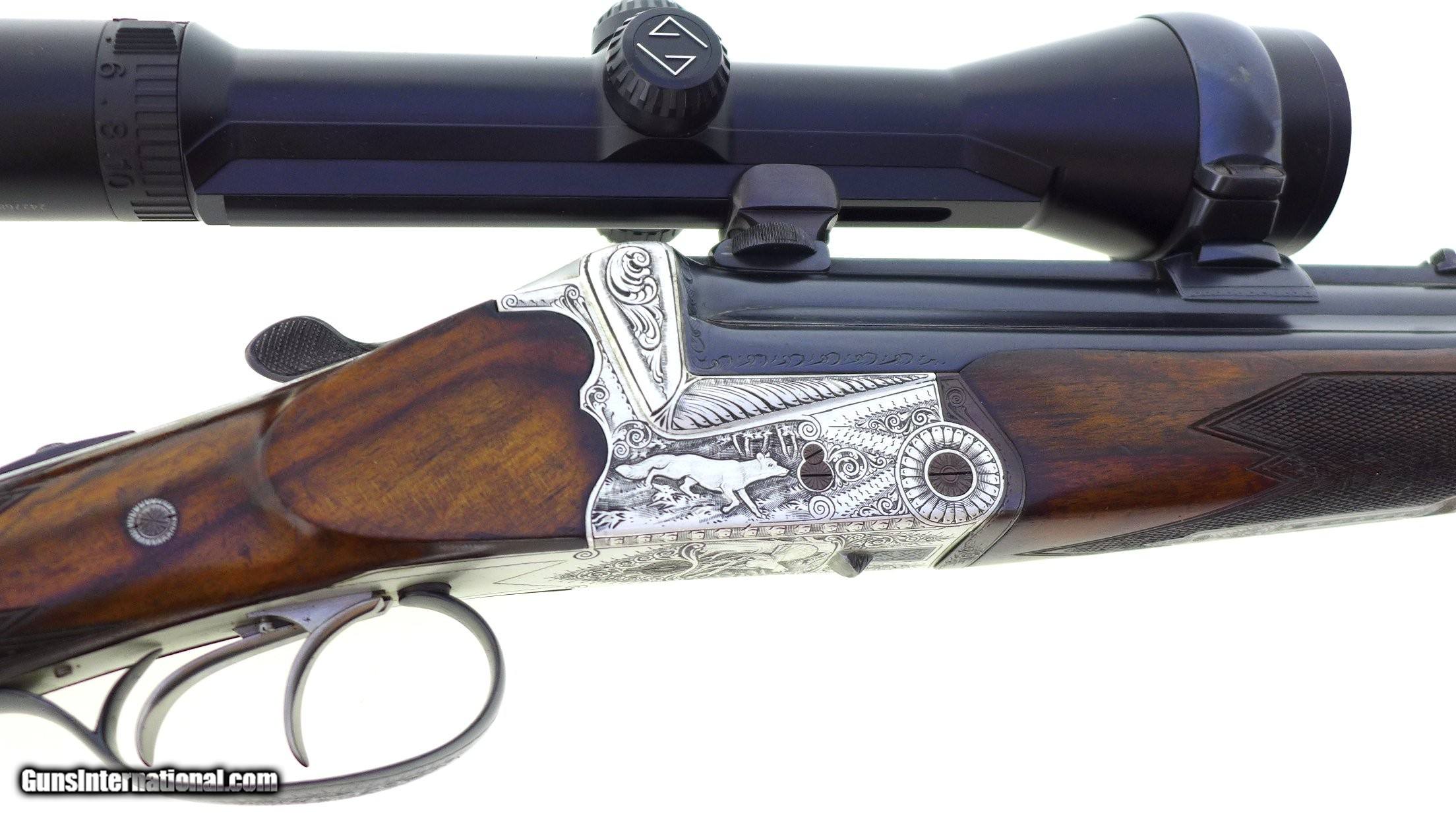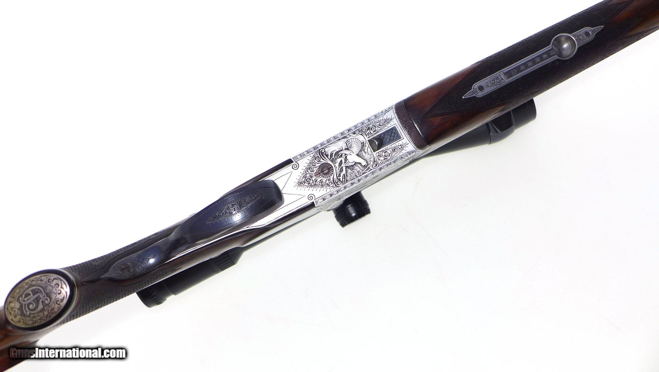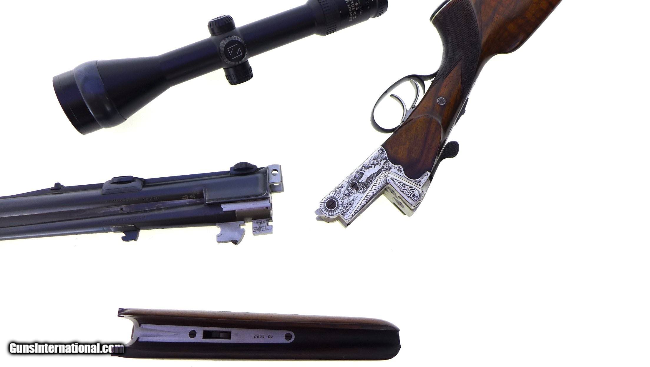 Description: AUGUSTUS FINE ANTIQUITIES GmbH SWITZERLAND VINTAGE HIGH END TRIUMPH DRILLING HUNTING GUN, MADE BY THE AUSTRIAN MASTER GUNSMITH JOSEF WINKLER IN FERLACH. COMPLETE WITH EXCELLENT MODERN ZEISS DIAVARI VM 2.5-10X50 T* HUNTING SCOPE ON SUHL TYPE MOUNT. 600MM BARRELS, EXCELLENT BORE CONDITION, AVIONAL (DURAL ALUMINIUM) RECEIVER WITH DOUBLE KERSTEN AND EXTRACTORS ! RIFLE CARTRIDGE SELECTOR ON TANG, SAFETY ON THE LEFT SIDE. FANCY TIGER STRIPED WALNUT STOCK IN GOOD CONDITION. STERLING SILVER OWNERS MONOGRAMM CAP ON PISTOL GRIP. OAL=1040MM, LOP=365MM, WEIGHT WITH SCOPE=3.75KG, CHOKE=IM !!! ABOUT 95% EXCELLENT BLUE METAL FINISH. GOOD ALPINE HUNTING ENGRAVING, ARABESQUE ENGRAVING ON TRIGGER GUARD. RETAILERS NAME ON SOLID RIB TOP: ZIMMERMANN & WIDMER BASEL (1960-67 SWITZERLAND). ** A CLASSIC POST WWII FERLACH GUN BY ONE OF THE BEST MAKERS ** **PRICELESS OLD WORLD CRAFTSMANSHIP** *** FREE EXPORT/IMPORT & CONTINENTAL US SHIPPING !!! *** MY US IMPORTER MMB IMPORTS LLC IS GOING TO COLLECT ALL FUNDS FOR THIS TRANSACTION. CREDIT CARDS (+ 3% charge), USPS M.O. PAYMENTS AND CASHIER'S CHECKS WELCOME! By buying this item, you acknowledge and agree to the following: a. you have reviewed the description and photos provided; b. you have asked any and all questions PRIOR to purchase; c. you have used your knowledge and experience in making this purchase decision d. you understand the item may be import marked and avarage import time is 8-10 weeks; e. you understand that the described item is being sold "as is" and that this sale is final with no returns or refunds. PLEASE NOTE: It is the responsibility of the buyer to know and abide by the Gun Laws in your State ! SOLD Curio/Relic: Yes Manufacturer: Josef Winkler Model: Triumph Condition: Excellent Metal Condition: Excellent Wood Condition: Excellent Bore Condition: EXCELLENT |