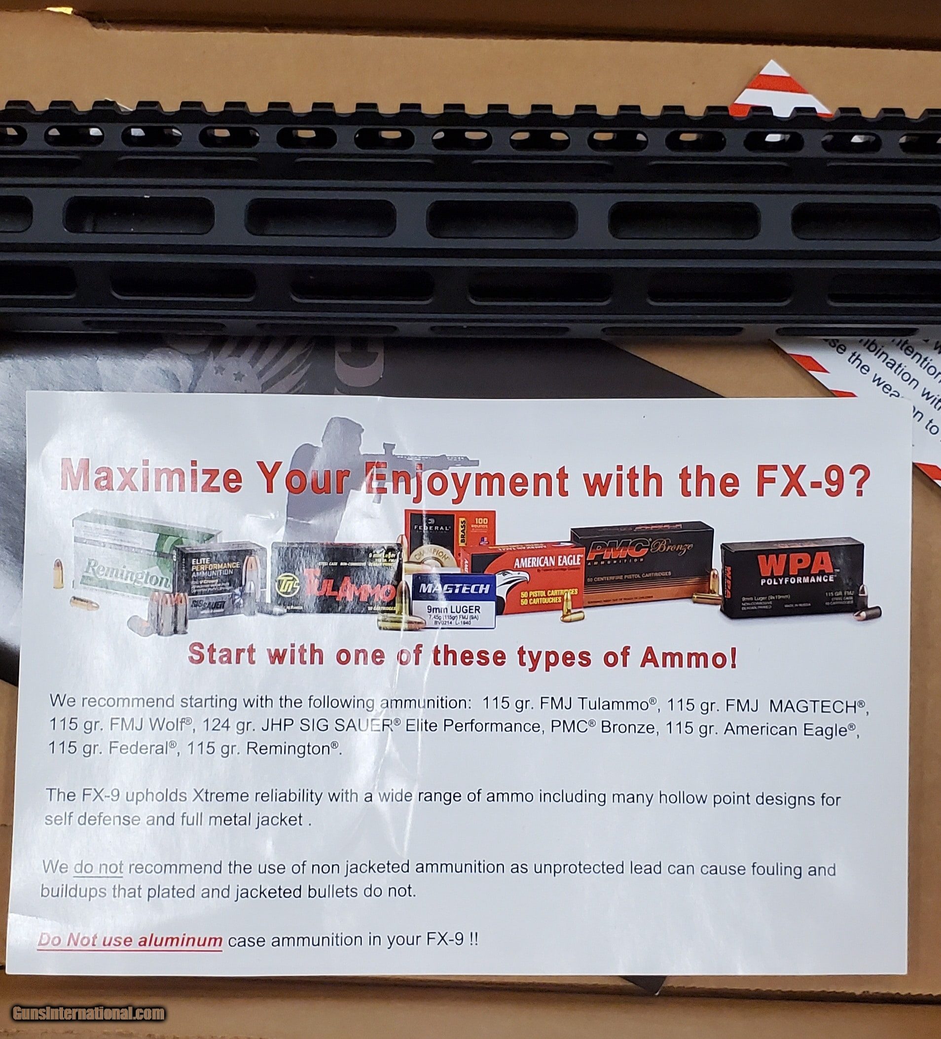 Description: Guns Listing ID: 50317 One-hundred percent American-made, this Freedom Ordnance FX-9 is a semi-auto rifle chambered in 9mm and set up similar to an AR-15. This pistol caliber carbine is made to deliver familiarity and reliability in an affordable package. It is perfect for a plethora of uses, including home defense, hunting, varmint control, and other applications. This FX-9 sports a collapsible stock, chrome-moly barrel, and a full-length Picatinny rail for easy mounting of optics and accessories. It is also compatible with most standard AR-15 parts. SOLD Manufacturer: FREEDOM ORDNANCE Model: FX-9 CARBINE Caliber Info: 9MM LUGER (9X19 PARA) Condition: new Barrels: 16" barrel Finish: BLACK |
