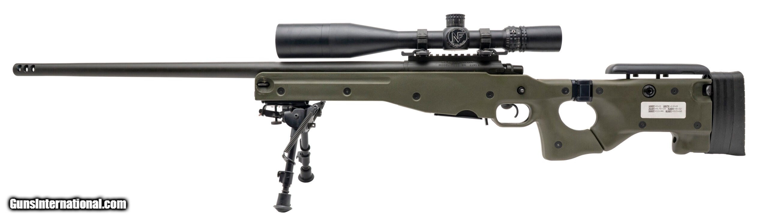 Description: "SN: 1191A. Modern production, .308 Win with a 26"" heavy barrel w/flash hider. Bore is bright with strong rifling. Bolt action precision rifle with a Night Force NX5 5.5-22x50mm scope, Harris bipod, and an Accuracy International Chassis System w/side-folding stock. Excellent condition overall. SOLD |
