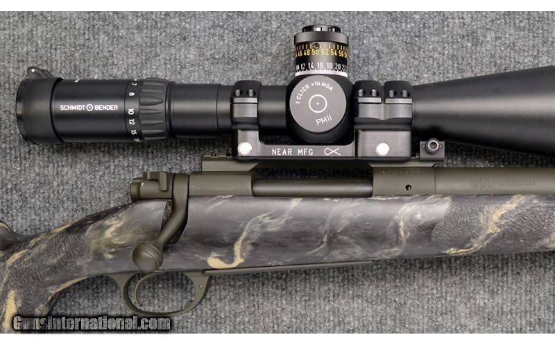 Description: For your consideration, G.A. Precision Model 70 chambered in 7mm Remington Magnum. This piece is a custom rifle built off a Winchester Model 70 action, but very little of the original rifle remains. The action has been mated to a heavy profile, fluted barrel terminating in a Badger Ordnance FTE muzzle brake. The attached Harris S-BR bipod is fitted with Phoenix Tactical Pod Claws feet for aggressive traction. The action is topped with a Schmidt & Bender PM II 5-25x56 scope in a Near Mfg ALPHAMOUNT and a U.S. Optics BBL 300 folding anti-cant device. The stock, textured at wrist and forend, is of unknown manufacture. 7mm Remington Magnum SOLD Metal Condition: Excellent Wood Condition: Excellent Bore Condition: Excellent Barrels: 26 Triggers: Serrated Face Stock Dimensions: 13.5" LOP Fore End: Textured Butt Pad: Rubber Weight: 15.5 Lbs Sights: Scope Item Location: Hamburg, PA |
