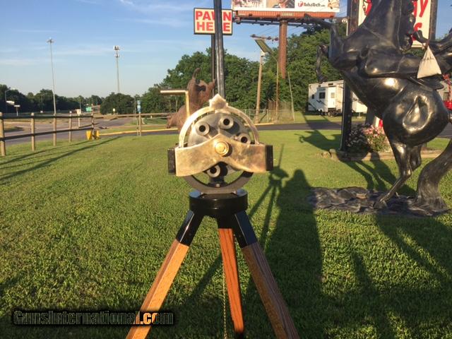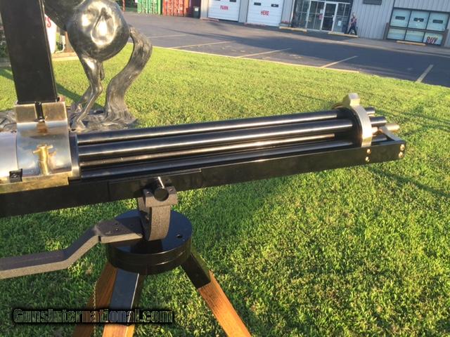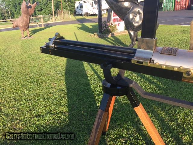 Description: WE'RE BACK!!! AFTER SEVERAL MONTHS OF NO INVENTORY, THE COMPANY HAS BEEN PURCHASED BY THE 'NEXT GENERATION' WITH COMMITTMENT TO CONTINUE AND IMPROVE ON QUALITY AND STEADY SUPPLY. These are Fully Functional Gatling Guns that use MODERN-DAY 45 Long Colt ammunition! This six barreled beauty comes 'New In Crate', but based on the original Gatling patent. NO Class 3 or special license of any kind is required---(AT LEAST UNTIL NOVEMBER ELECTIONS!) Operates on same principle of semi-rifles--one trigger pull= one shot or in this case, one crank - one shot. This is NOT some cheap version that was cobbled together with a kit. These are professionally manufactured after years of trial and error to give that perfect performance each and every time! Over 200 sold with a ZERO COMPLAINT RECORD! As seen on the Television series "Hell on Wheels'' , Hunters and Storage Wars. NOTHING ON TODAY'S MARKET EVEN REMOTELY CLOSE. For the low price of $6,995, you get the fully functional Gatling Gun-COMPLETE and ready to operate! This INCLUDES free delivery to your FFL dealer in any of the lower 48 states. The next closest thing to it is the Colt Special Order Gatling at a cost of $50,000! You have the option of 2-20 round magazines or 1- 40 round magazine ( with additional magazines available at additional costs). Don't ask for different calibers or modifications. This LOW PRICE is maintained through volume purchasing of parts to hold costs down. At 350 lbs and 4 foot in length, this definitely is NOT a conceal-carry weapon. Impress 'em all at the gun range or Rent it out to help defray costs. Lets face it guys-we all want the biggest, 'baddest', toys. Well here's your chance. Big, Bold, & Beautiful! As the Distributor for these Fantastic Firearms, we offer a very accommodating layaway when arrangements are made in advance of purchase. Trades also considered. If we can SELL IT, We'll CONSIDER IT. SOLD |