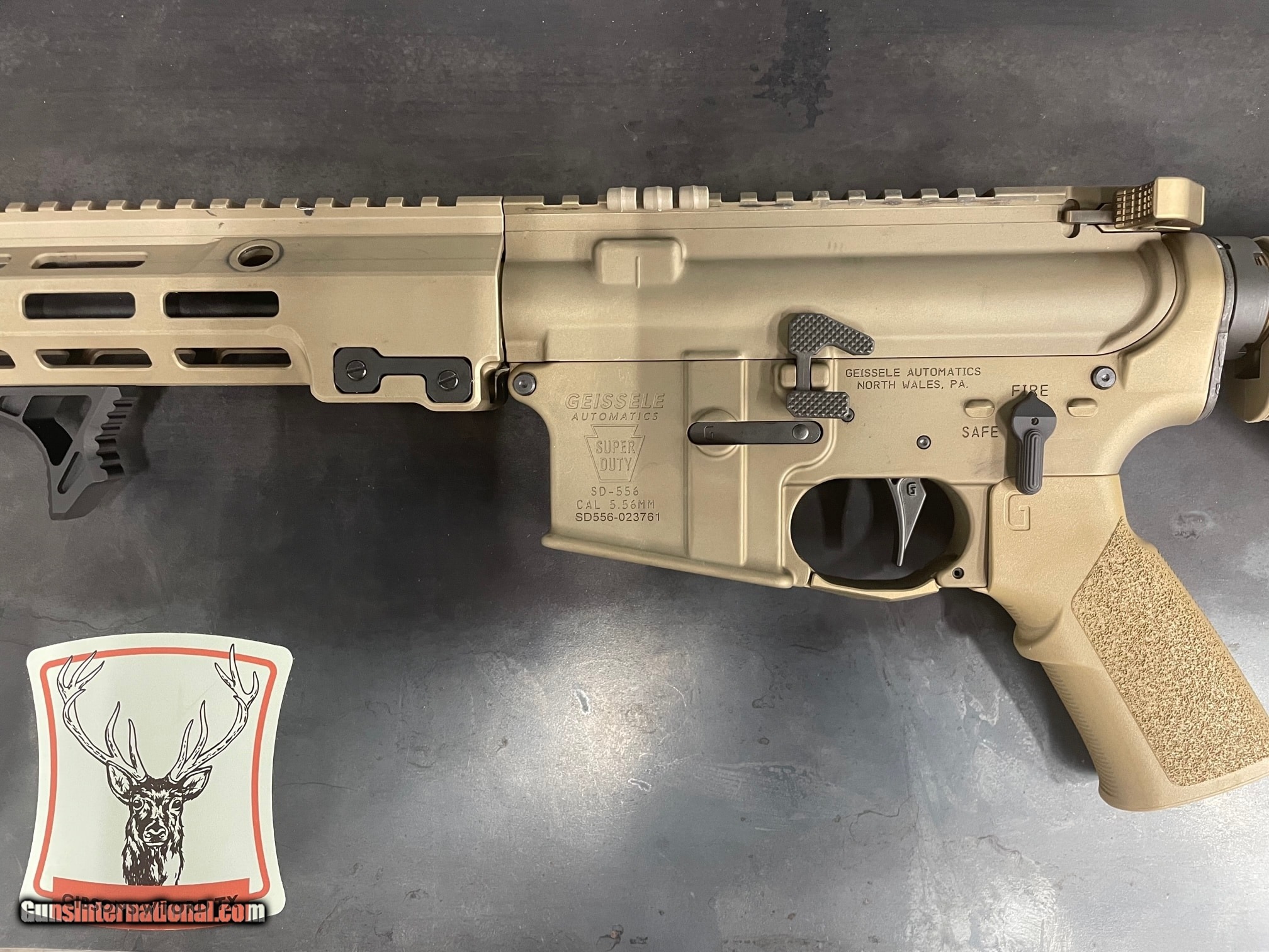 Description: Guns Listing ID: 523924 Super Duty Rifle, 16\", 5.56MM - DDC The Super Duty Rifle features the latest in weapon technology available exclusively from Geissele Automatics. This 16” rifle chambered in 5.56mm features a Nanoweapon coated Surefire Closed-Tine Flash Hider mounted to an in-house 16” Manganese Phosphate coated, Cold Hammer Forge, Chrome Lined, 1-7 twist Geissele barrel. Our barrels are precision machined and cold hammer forged utilizing the highest quality materials at our state of the art facility in North Wales, PA. The Geissele Length gas system and Geissele Super Compact Gas Block (with bomb-proof installation) ensures reliability and optimal performance in extreme conditions and heavy use. SOLD Manufacturer: GEISSELE AUTOMATICS Model: SD-556 Caliber Info: 5.56 NATO Condition: Used - Non-Certified Barrels: 16 BARREL Finish: FDE |