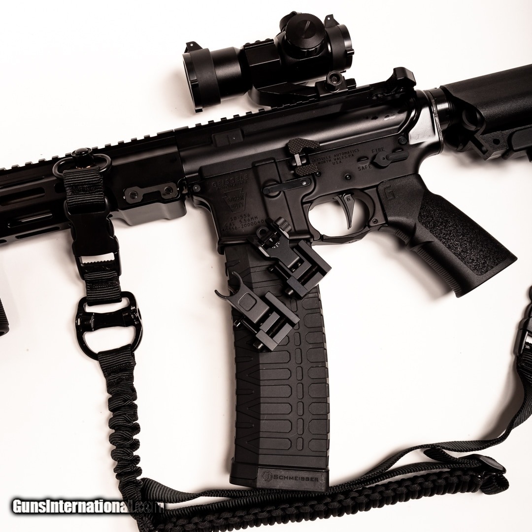 Description: Guns Listing ID: 591341 The Geissele Super Duty SD-556 combines the accuracy and speed of a competition gun with the rugged reliability of a combat-ready rifle. It is built from the ground up by Geissele and will make for a great target/training rifle and home defense tool. This SD-556 Super Duty features a red dot sight, vertical foregrip, 15\" M-Lok handguard, and a sling. Purchase includes the original box, manual, one 60-round magazine, and spare flip-up sights. It is in excellent condition! SOLD Manufacturer: GEISSELE AUTOMATICS Model: SUPER DUTY SD-556 Caliber Info: 5.56X45MM NATO Condition: Used - Certified Barrels: 16 BARREL Finish: BLACK |