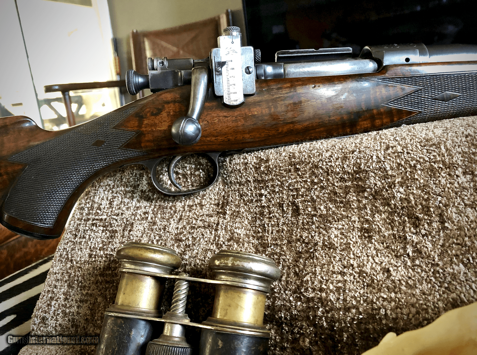 Description: 30/06 HOWE RIFLE A 1927 James Howe (of Griffin & Howe fame) original in 30/06. Springfield action. Beautiful stock. And it's a stone cold killer. This gun loves Remington's 220 grainers. Yes it's a curio/relic, but it also is an accurate hunting machine. No scope. No problem! I've taken several whitetail and hogs with this without fail. It works as good as it did when it rolled out of Howe's shop ninety-three years ago. The wood has a few dings but I'd put it at 95%. The metal has a cool, worn bluing, that you can only get when you're 93yrs old. The bore is excellent. The LOP is 13 1/4". Barrel length is 23 1/2". It has the standard G&H sidemount but doesn't not come with scope or scope rings. It sports a Lyman 48 receiver sight that is dead on at 100yds. This rifle is a gem. In addition, it is also featured in Mike Petrov's writings on Custom Gunmakers of the 20th Century. SOLD Curio/Relic: Yes |