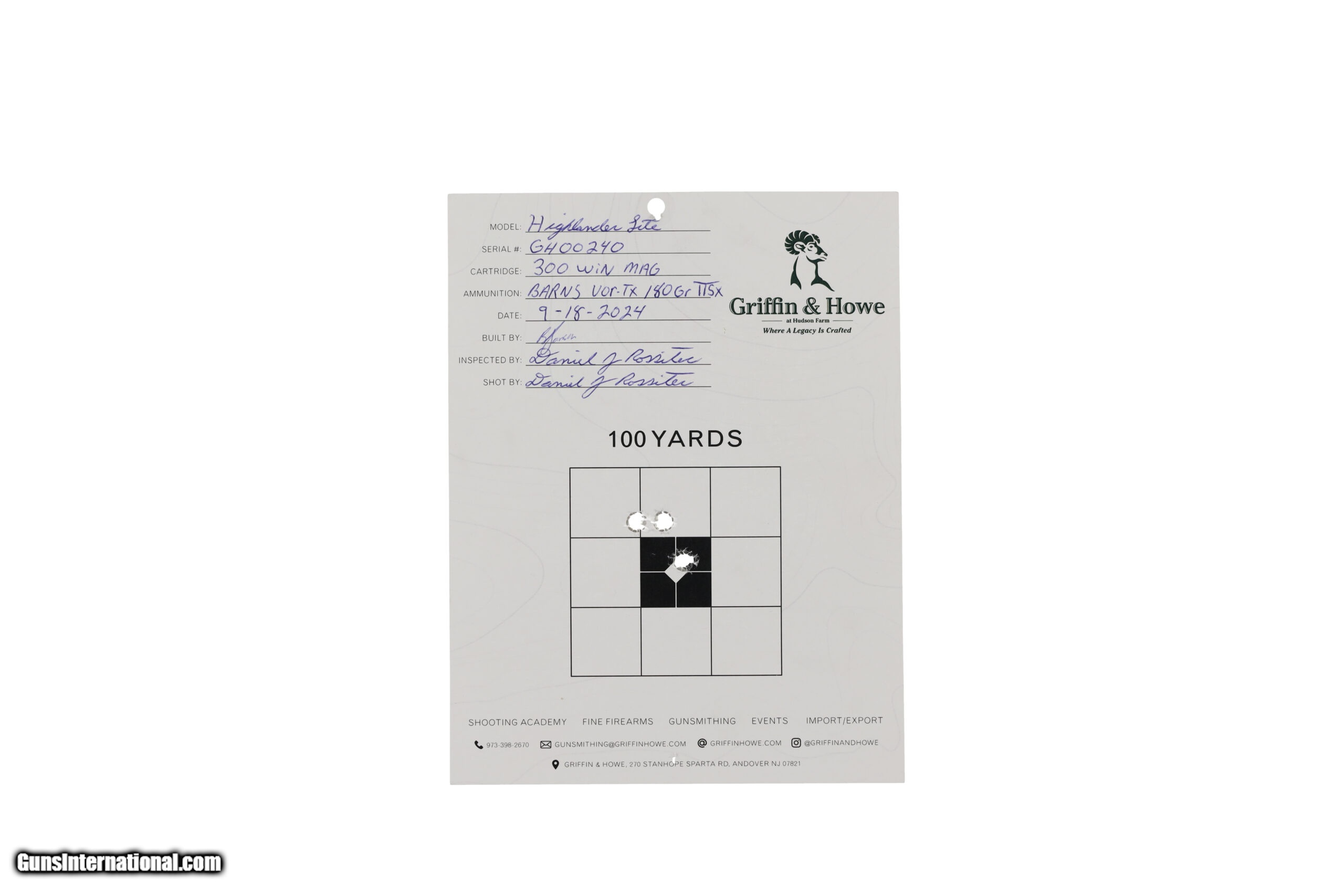 Description: The New for 2024 Highlander Lite is Griffin& Howe’s lightest production rifle. Built to the same standards as our flagship Highlander rifle the Highlander lite is precision engineered for long-range accuracy. Light-weight and balanced, the Highlander lite can take you from mountain to safari. Manufactured in: USA Hand: Right Hand Action Finish: Cerakote Metal Finish: Original Barrel Length: 21 1/2" Barrel Condition: New Stock Finish: Original Stock Condition: New Type of Butt: Factory Pad Pad Thickness: 7/8 Inch Grip: Pistol Forend: Synthetic Extra Barrels: No. SOLD Manufacturer: Griffin & Howe Model: Highlander Lite Caliber Info: .300 Winchester Mag. Condition: New Metal Condition: New Action: Bolt Action Triggers: Single Fore End: Synthetic Butt Pad: 7/8 Inch LOP: 13 1/2 Finish: Original Weight: 6.0 lbs Manufacture Date: 2024 Extras: No. Case: Negrini |