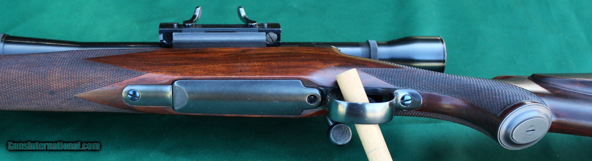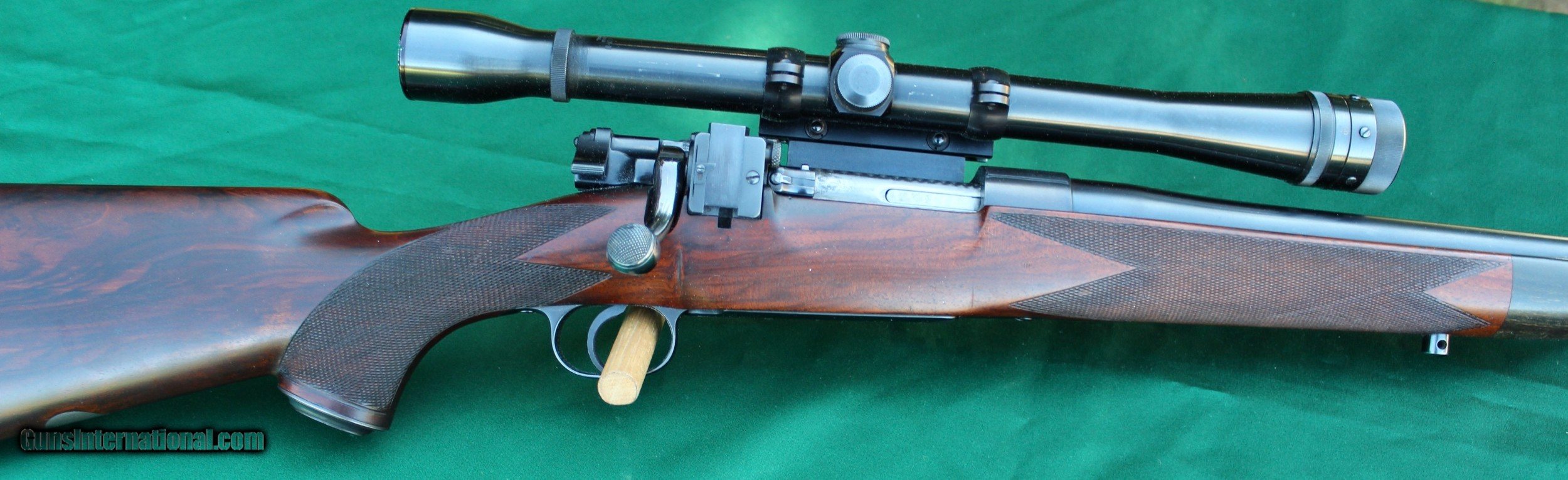 Description: Griffin & Howe 222 Remington built on a 1922 Springfield Action This is a rarely seen caliber in a vintage G&H built rifle. Rifle is in Excellent condition throughout. Super accurate (Puts 'em all in one hole) and very pleasant to shoot. G&H made up a handful of 22 Hornet and K Hornet rifles, along with a couple of 2 R Lovell rifles on 1922 actions in the early 1930's. This rifle was obviously one of that group at one time. Since then it has gone back to G&H for re-chambering to 222 Remington. Griffin's retained as much of the Pre-War character as they could while doing the conversion. We are the richer for that. Now we have a rifle with the look and feel of a PreWar with the performance of a terrific modern caliber. Dimensions: Barrel Length: 24 inches LOP: 13 3/4" Weight: 8 lbs 4.4 oz. - With Scope: 9 lbs. 15.5 oz. $7995.00. Plus Shipping. SOLD Rifle Caliber: .222 Remington Manufacturer: Griffin & Howe Model: 1922 Springfield Condition: Excellent |