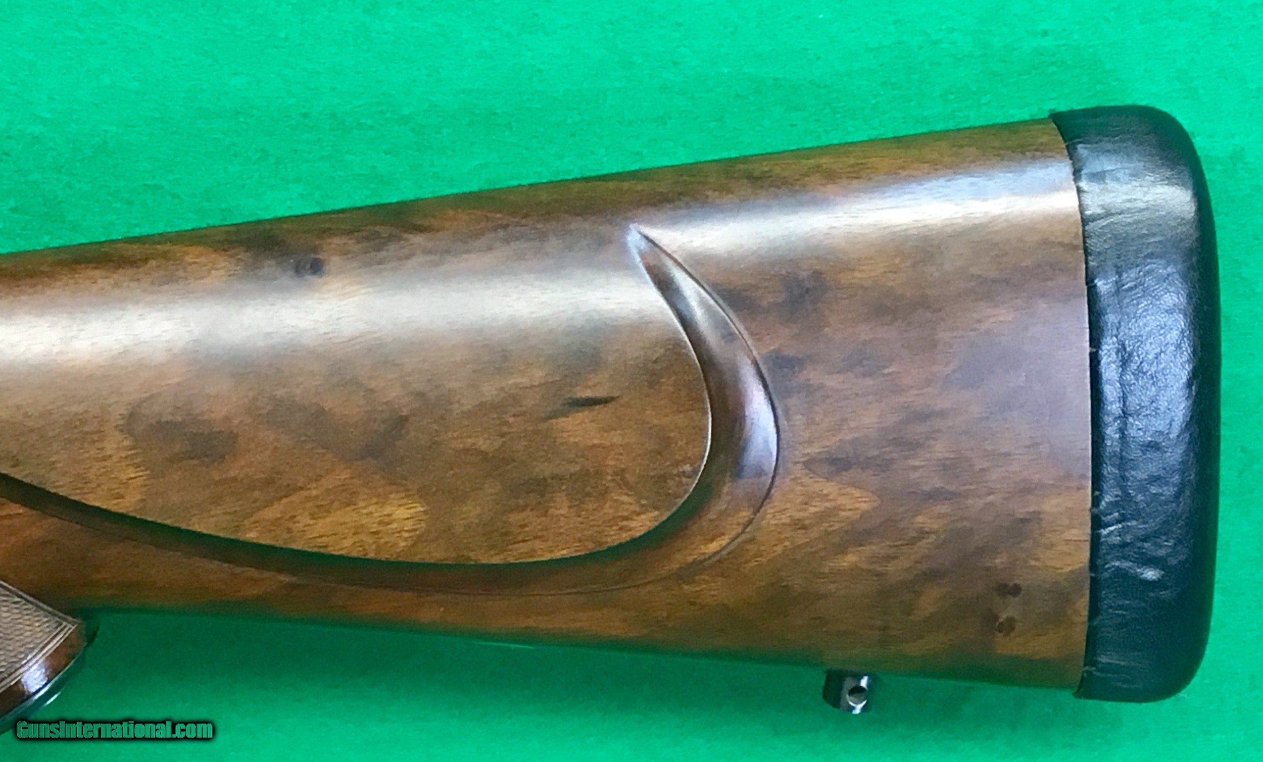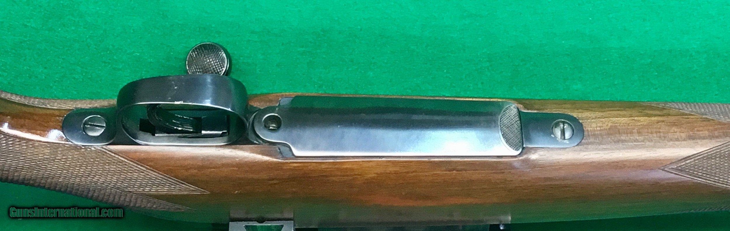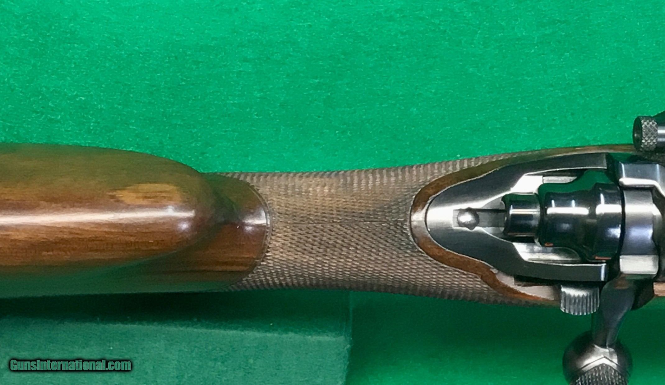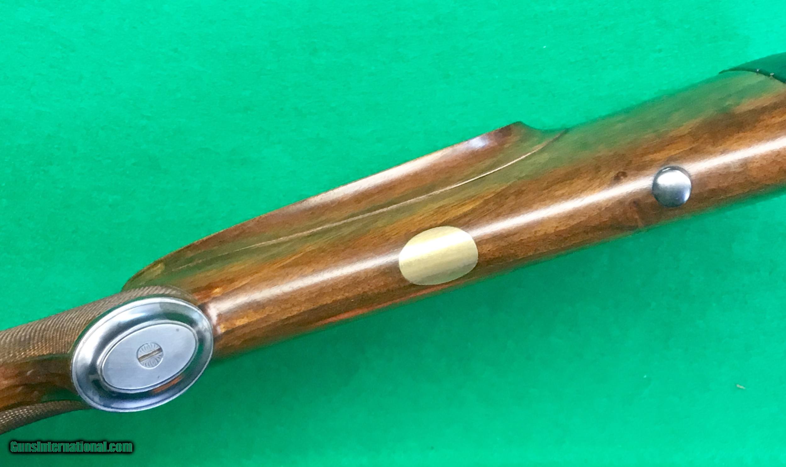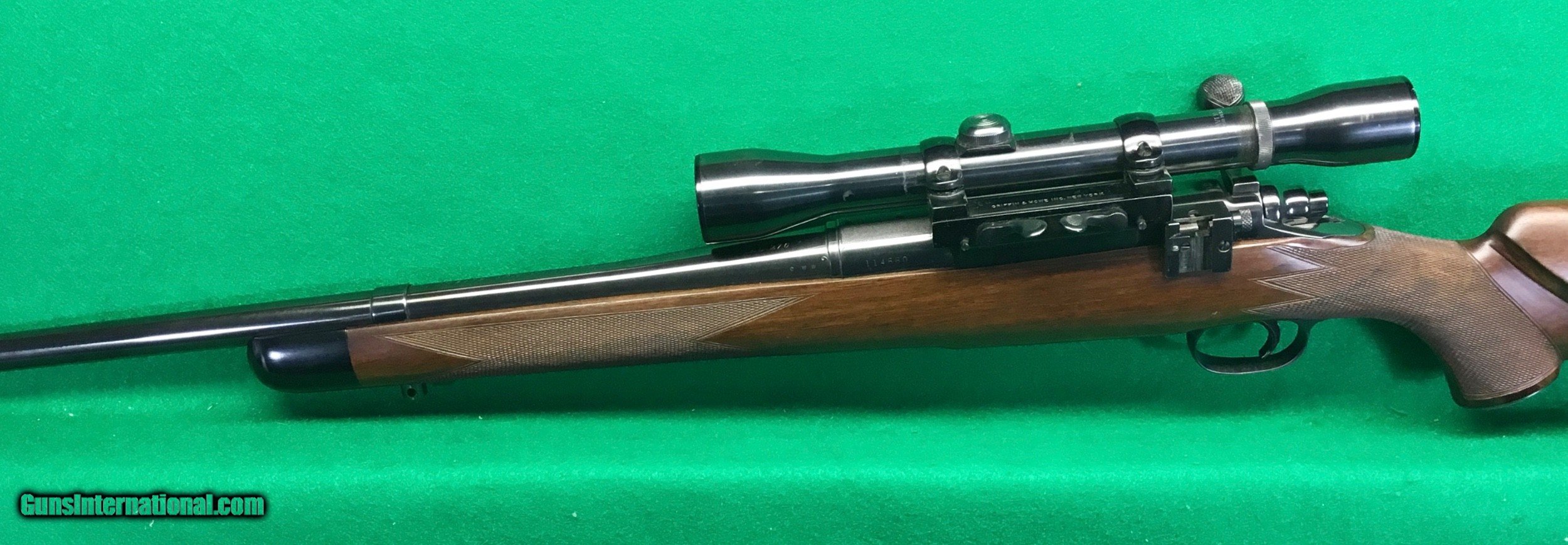 Description: One of a few premier custom gunmakers, Griffin & Howe has been around a long time and has turned out some of the finest custom rifles made in the U.S. this one is a 270 Win with their quick detachable scope mount with same era 4X weaver and back-up peep that is missing the slide. LOP over the leather covered pad is 13 5/8”. Wrap around checkering on the forearm and a black forend tip. G&H’s distinct cheekpiece for a right hand shooter. Jeweled bolt and checkered bolt knob. G&H changed the floor plate to what appears to be a Springfield. The 721 dates to 1950, so I have to assume G&H made it in the 50’s before the model 700 came out in the early 60’s. The G&H serial number is 2079. Overall-in super condition. C&R ok. $2398 plus $50 insured shipping in hard case. Lay-a-way available, no credit cards and no trades. SOLD Curio/Relic: Yes |