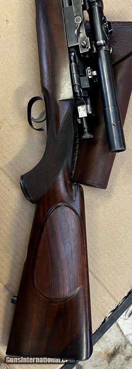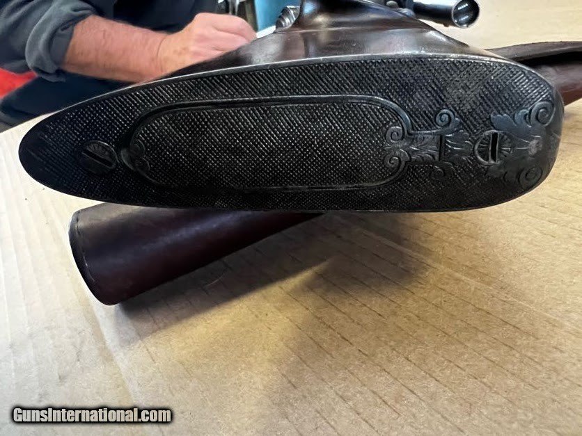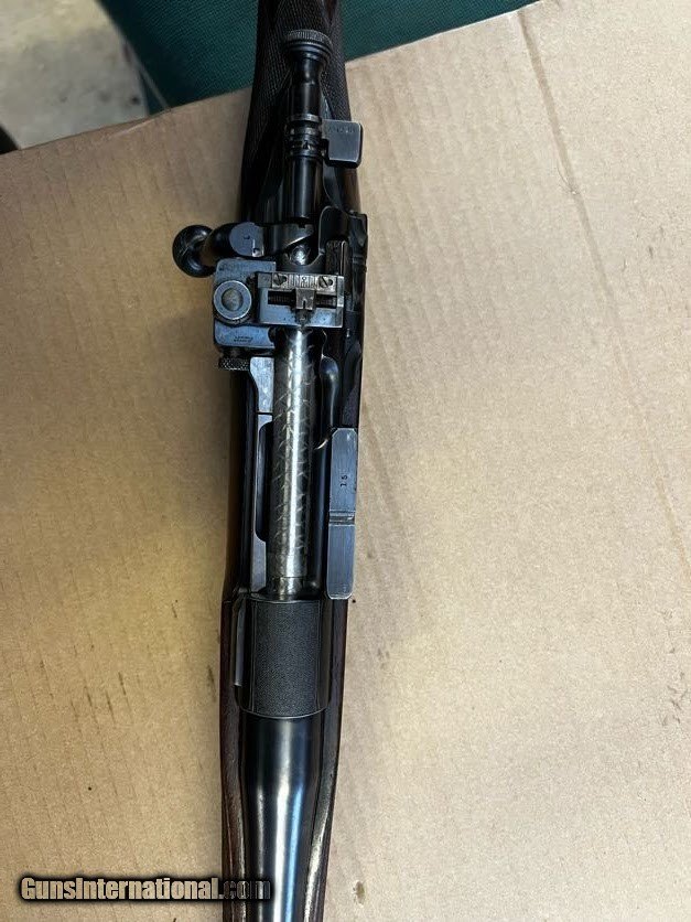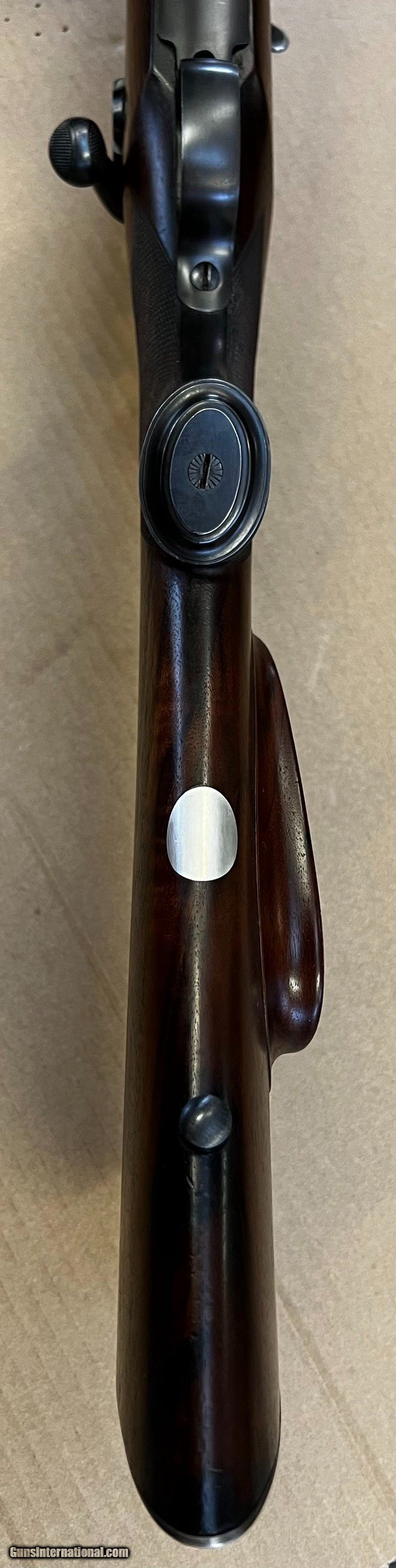 Description: SOLD. For sale is a Griffin & Howe Rifle, built on a 1903 Springfield Action with an 21" barrel (this barrel length was occasionally utilized by G&H on their earlier guns), Serial Number 877, built in late 1928 or early1929. It is completely original in every way. The gun is in very good plus condtion overall. It even has the original numbered scope holster. The gun came out of Washington State. That is as much as I know about its history, as Griffin & Howe did not have any records for this particular rifle. This gun features the Single Lever Mount and is equipped with a Zeiss Zielklein scope with the German Reticle (3 crosshair). Note: The 21" barrel length was utilzed by Griffin & Howe in their guns made in the late 1920's for a "Carbine" or "Short Rifle." It makes a wonderful gun that swings easlly and balances well. I personally think it is the better suited for this style of gun than either the 20" or 22" barrels that other makers use (and, of course, have used for many years). Just a side note here--in relatively "Modern Gun Production," CZ made a little Model--the 455 American--with a 20 1/2" barrel, and. in my mind's eye--these are just abnout the nicest handling little guns in small calibers that anyone could ask for. So, I rest my case with the G&H guns built with the 21" barrels in the late 1920's and early 1930's. The snap is broken on the Scope Holster. We had a Saddelry Shop in town, but it closed down years ago. A good leather person should be able to fix it without too much effort. If you want the gun shipped in a hard case, my cost at the local Dunham's store is $ 32.02 for a Flambeau Hard Case. You would need to add this to the total. The one good feature about G&H guns is that Seymour Griffin always ordered actions and barreled actions from the current Springfield Armory stock. Therefore, unlike Sedgley, his guns were always about the 800,000 Serial Number range (The "Questionable" early Springfield actions that so much has been written about). I have never taken this gun apart. I didn't want to burr up the gun screws even though I have gunsmithing screwdrivers. The fact that G&H bulit the gun, and that it was all original, was good enough for me. In the early G&H guns, I greatly prefer the 1903 Springfield Actioned guns. There was an "Unknown Stockmaker" who worked at Griffin & Howe during the period of the late 1920's and into the early 1930's. He made the stock for this gun. Note how he kept the edges sharp on the contours of the left hand side of the stock. I have seen several of his stocks made like this. I find it very attractive, and aesthetically wonderful. Other G&H stockmakers had slightly more rounded edges on the lines of their stocks. This particluar gun has a wonderful piece of Circassian Walnut, as is evident in the pictures. No extra holes, nothing. The bolt and extractor are engine-turned. The bolt is cross-hatched in the typical pattern that G&H used during this period. The raceway and follower are blued. The LOP is 13 1/2inches. The gun weighs 8 pounds, 5.3 oz. scoped. There is a stamping on the base of # 15 and the stamping on the bottom of the Single Lever Mount is # 22. Photos illustrate these numbers. The mount fits on the base perfectly. There is a tiny spot of corrosion on the mount, and three tiny spots on the bottom of the barrel. I simply have kept these wiped with oil. You could easily take and use fine Emory cloth to clean them, but, would have to find the right touch-up Bluing for finish. Agin, view the photos. The action is like glass on this gun. It is my personal opinion that the best G&H rifles were made from 1927 to 1936. By 1927, G&H had somewhat "Standardized" features on their guns. This particular gun embodies such features. $6799.00 plus shipping and insurance. Call or email me if you have any questions. SOLD Curio/Relic: Yes Rifle Caliber: 7x57mm Mauser Manufacturer: Griffin & Howe Model: 1903 Springfield Serial Number: 877 Barrel Length: 21 Condition: VG Plus Metal Condition: VG Plus Wood Condition: VG Plus Bore Condition: Good |