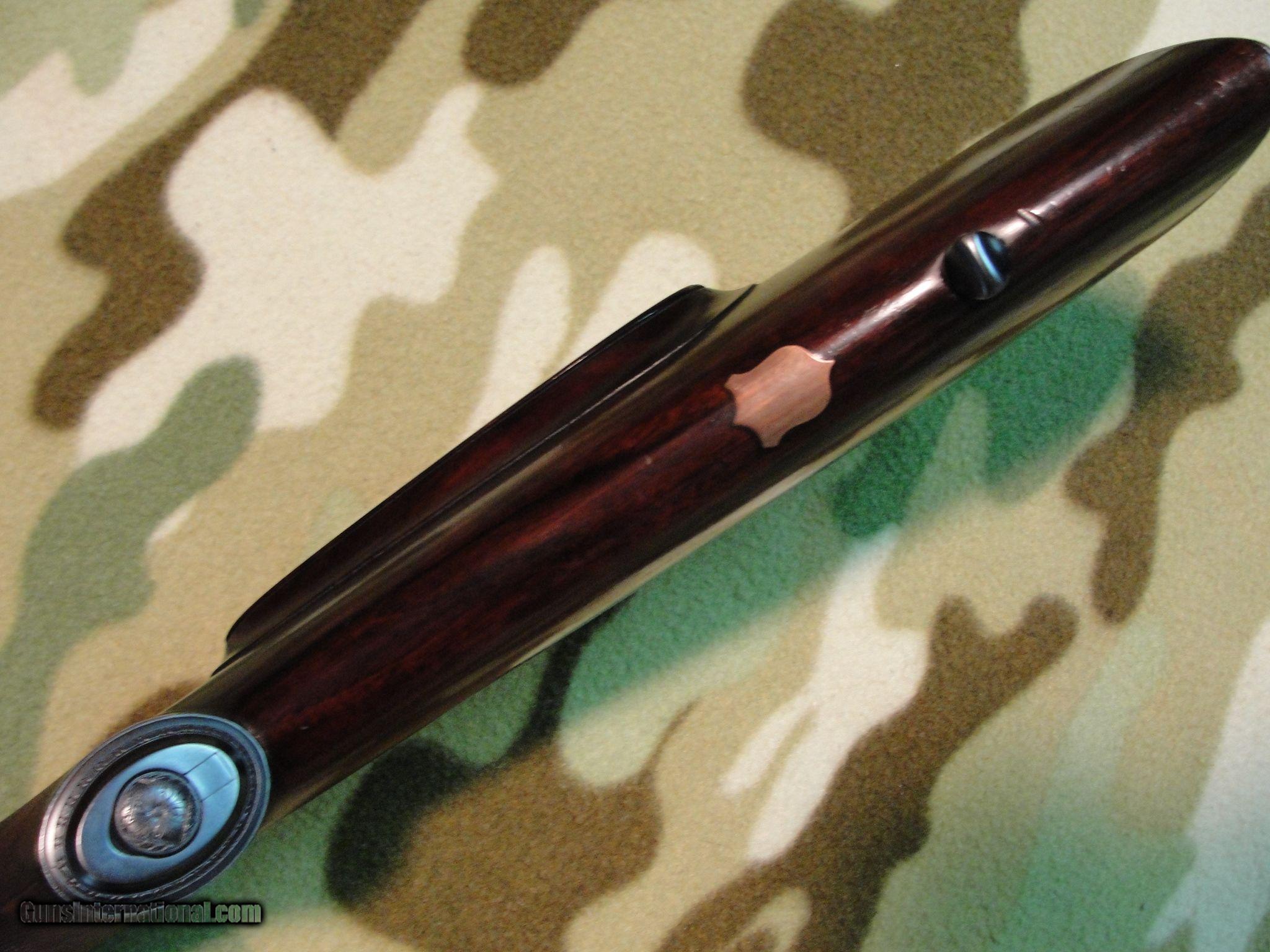 Description: If you own a copy of "Custom Gunmakers of the 20th Century" by Michael Petrov, then you are familiar with (Bob) R.G. Owen. This has been a fun rifle for us: the more we study it, the more attention to detail we see! What custom features can you spot from our pictures? 24" star-gauge barrel has a pristine bore; balance of the wood and metal are in beautiful shape. Call or email for more details. SOLD Curio/Relic: Yes |