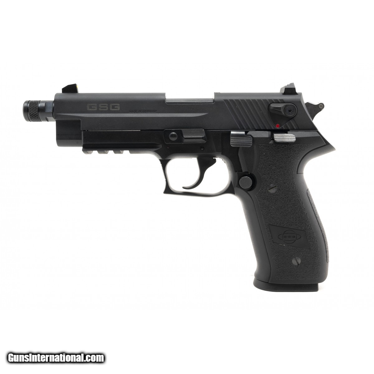 Tactical rimfire pistol with threaded barrel, safety, decocker, luminusecent sights, and 10 round magazine. With box. Very good condition.
