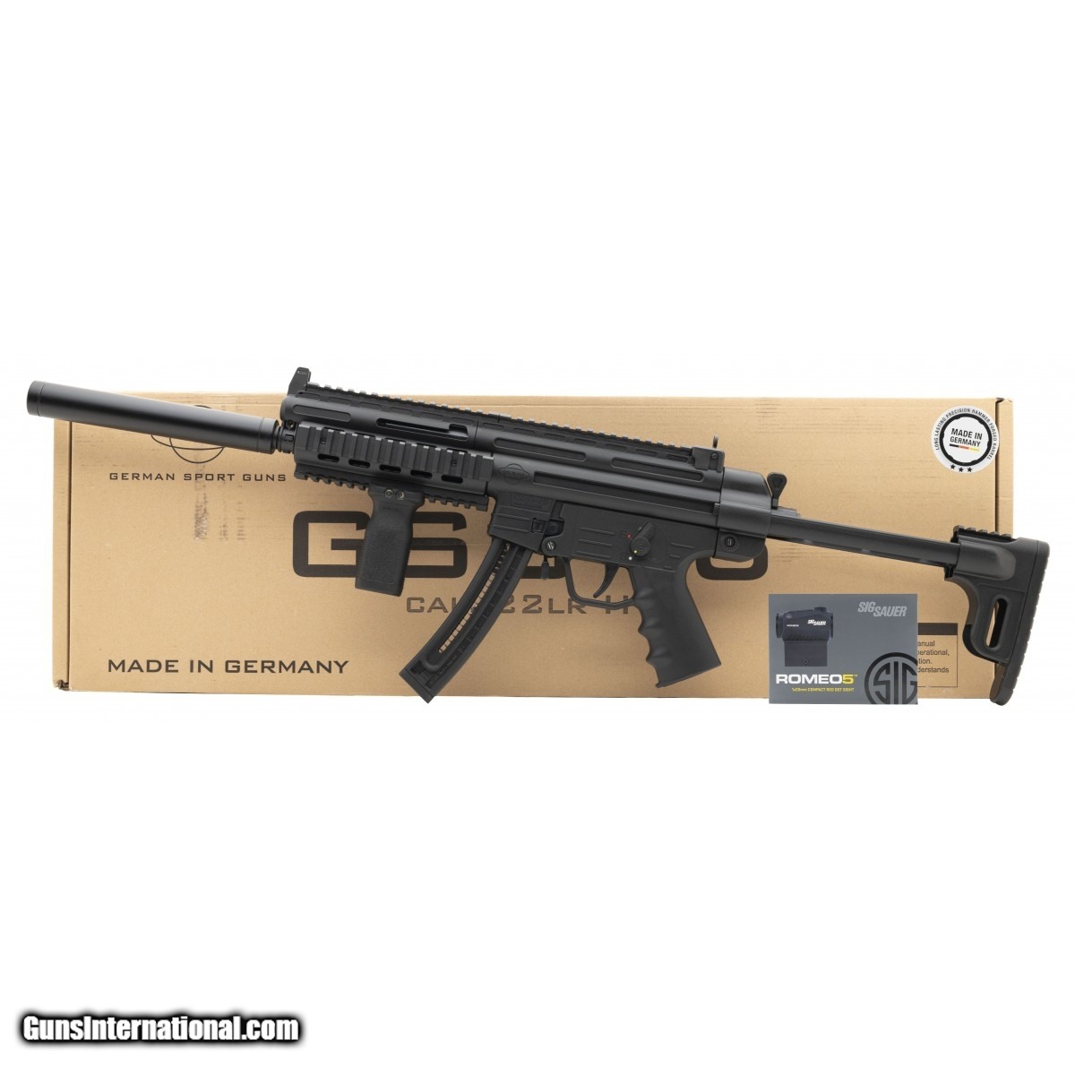 Semi-auto rimfire rifle with a 16.25"" barrel and a collapsible buttstock. Overall in excellent condition, with box, a Sig Romeo 5 red dot and a Magpul vert grip.