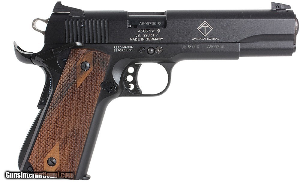 Description: BRAND NEW IN THE BOX AND READY TO SHIP! BUY IT NOW!! Manufacturer: American Tactical / German Sport Guns Item: GSG 1911 CA Compliant SKU: GERG2210M1911CA Caliber: .22 LR HV Capacity: 10 Rounds Barrel Length: 5" Steel Frame: Zinc Alloy, Black Anodized Slide: Aluminum, Black Anodized Overall Length: 8.5" Grips: Walnut, Double Diamond Pattern Sights: Low Profile Fixed - Rear, Includes 3 Front (Low, Medium, High) Weight: 34.4 oz When John M. Browning invented his classic pistol in 1911, he could not have imagined that for over a century it would remain the standard of excellence in the industry and reproduced by almost every arms manufacturer in the world. The .22LR version developed by GSG retains the 1911's classic uniqueness along with exciting new technology and features, including several safety functions to meet today's rigorous standards. From casual plinking to competitive shooting, the GSG 1911 belongs in the hands of everyone who wants an excellent pistol at a great price. Features: