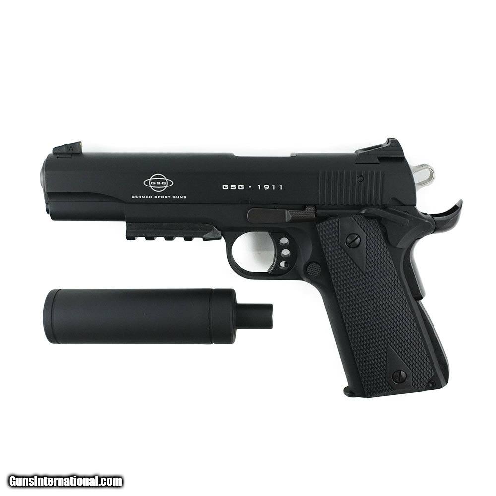 Description: Manufacturer: German Sport Guns Importer: Blue Line Solutions Model: GSG 1911 Tactical SKU: 4110031 Calibers: .22 LR HV Barrel Length: 5" Threaded Faux Suppressor Capacity: (1) 10 Round Magazine Frame: Zinc Alloy, Black Anodized Slide: Aluminum, Black Anodized Sights: 3-Dot Contrast Overall Length: 8.5" Grips: Black Poly, Double Diamond Pattern Weight: 34.4 oz All items are factory new in box unless otherwise stated. Based on the information available to us, the above specifications describe this item to the best of our knowledge. For further information, please contact or visit the manufacturer's . SOLD |
