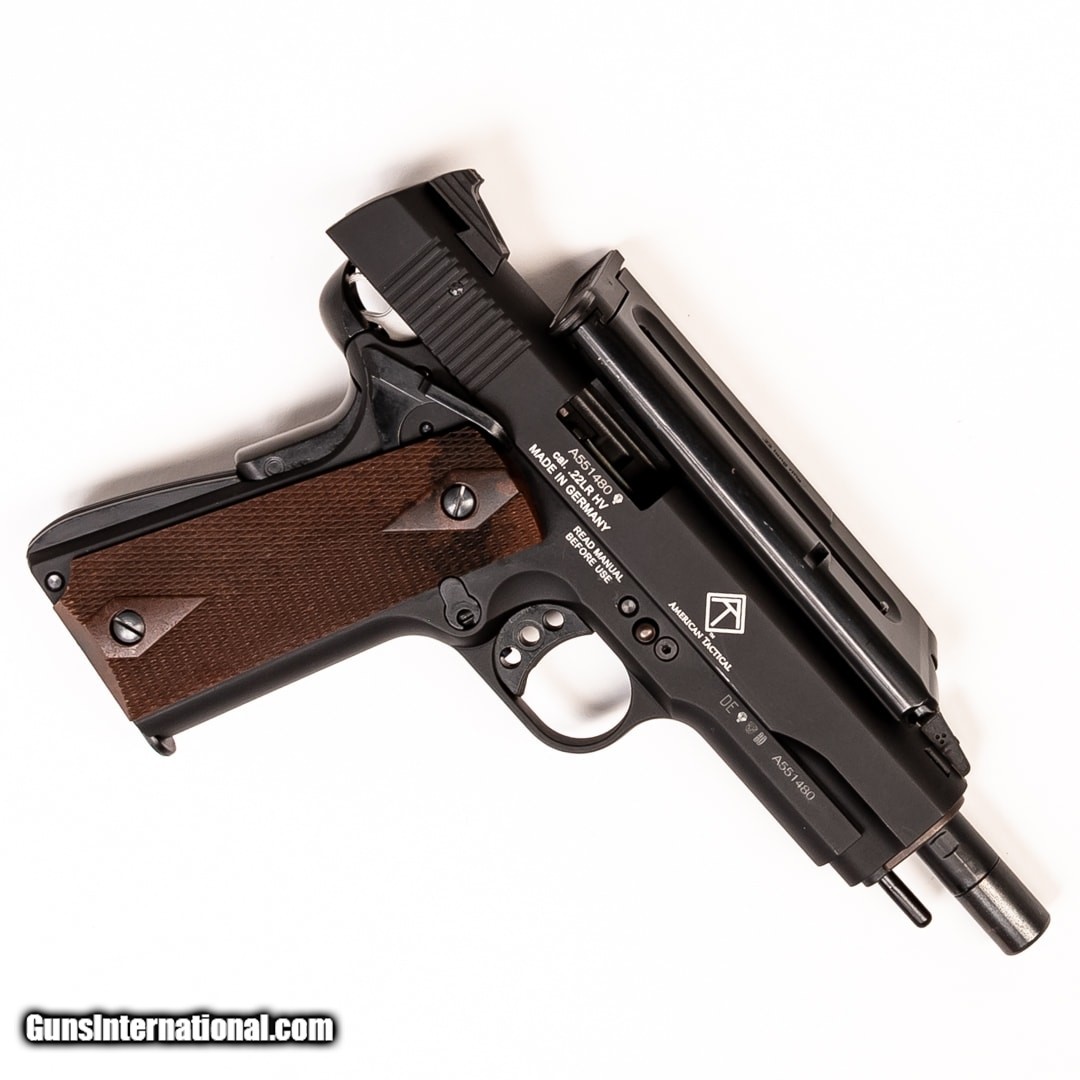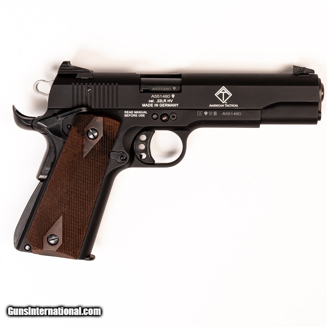 Description: Guns Listing ID: 521836 For sale is an American Tactical Imports GSG 1911. It‚‚s a 1911-style pistol chambered in 22 LR. This listing is for a GSG 1911 CA model and includes the original case, manual, and two 10-round magazines SOLD Manufacturer: GERMAN SPORT GUNS Model: GSG-1911 CA Caliber Info: .22 LR Condition: Used - Certified Barrels: 5 BARREL Finish: BLACK |