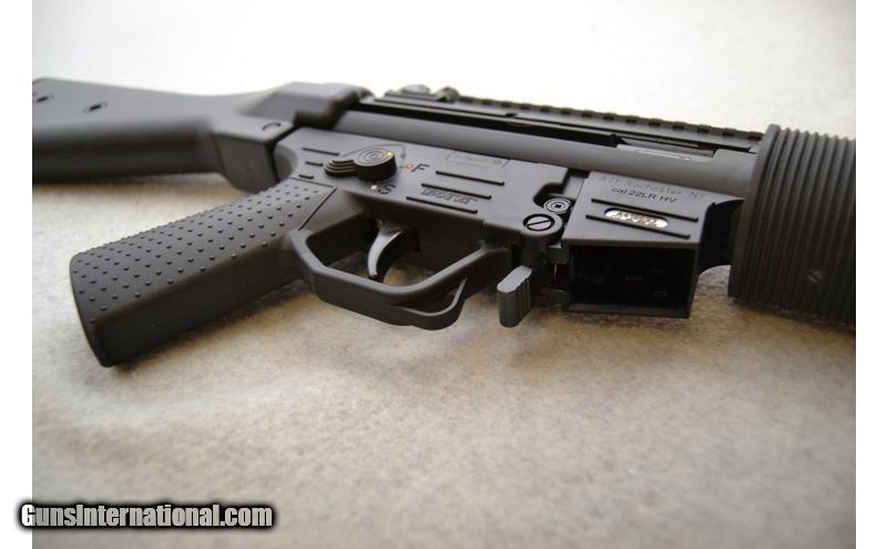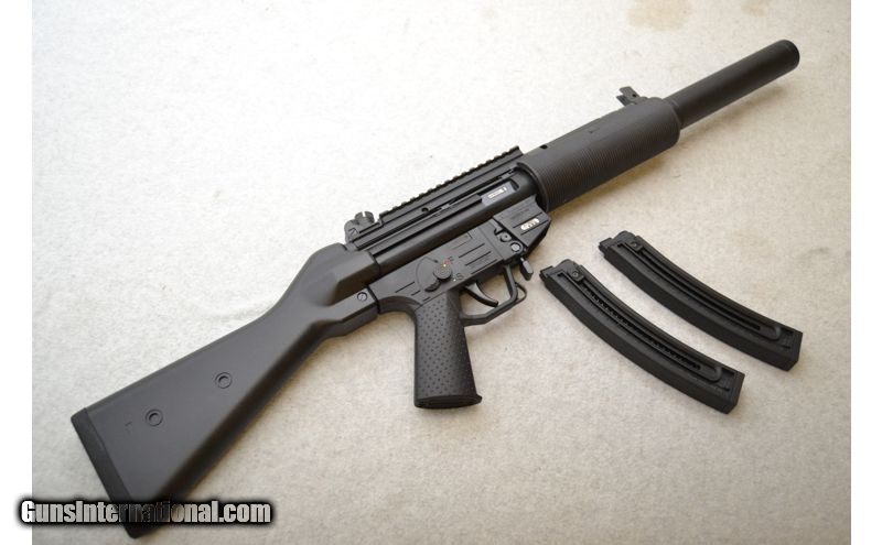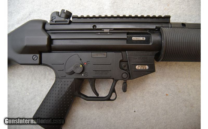 Description: Great condition overall. The fake suppressor has a few minor handling marks but the rifle is otherwise clean. Bore is excellent with healthy shine and well-defined rifling. .22 Long Rifle SOLD Chambers: Semi-automatic fed from detachable magazines. Metal Condition: Very good. Wood Condition: Furniture is in very good condition. Bore Condition: Excellent. Barrels: 16" With fake sound suppressor shroud. Triggers: Matte black polymer with smooth surface. Stock Dimensions: 14" LOP Fore End: Rubberized wrap intended to simulate that found on the integrally suppressed MP5. Butt Pad: Rubberized plastic pad. Weight: 5.5 lbs. Sights: Front white dot on post with rotary rear. Picatinny rail. Item Location: Green Bay |