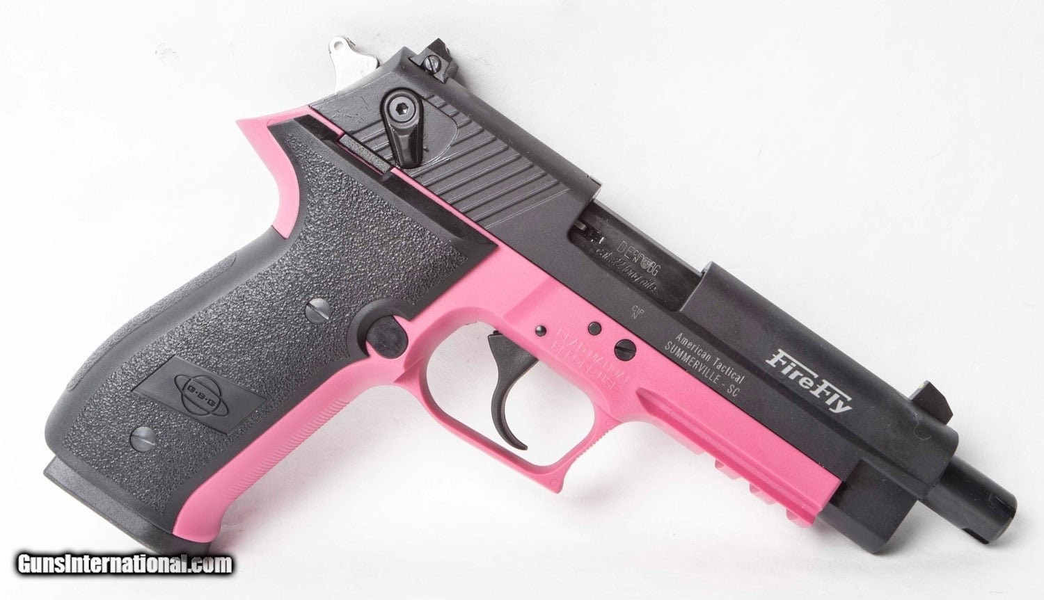 Description: Guns Listing ID: 44764 The GSG FireFly features a wear-resistant alloy frame outfitted with an integrated accessory rail. The slide has an adjustable rear sight, and along with the rugged blowback system, fixed barrel and superior ergonomic grip, the GSG FireFly delivers exceptional accuracy. Safeties include an internal locking device and slide-mounted ambidextrous safety. This model has a threaded barrel and a pink frame finish. SOLD Manufacturer: GSG GERMAN SPORT GUNS Model: FIREFLY Caliber Info: .22 LR Condition: new Barrels: 4.9 BARREL Finish: PINK |