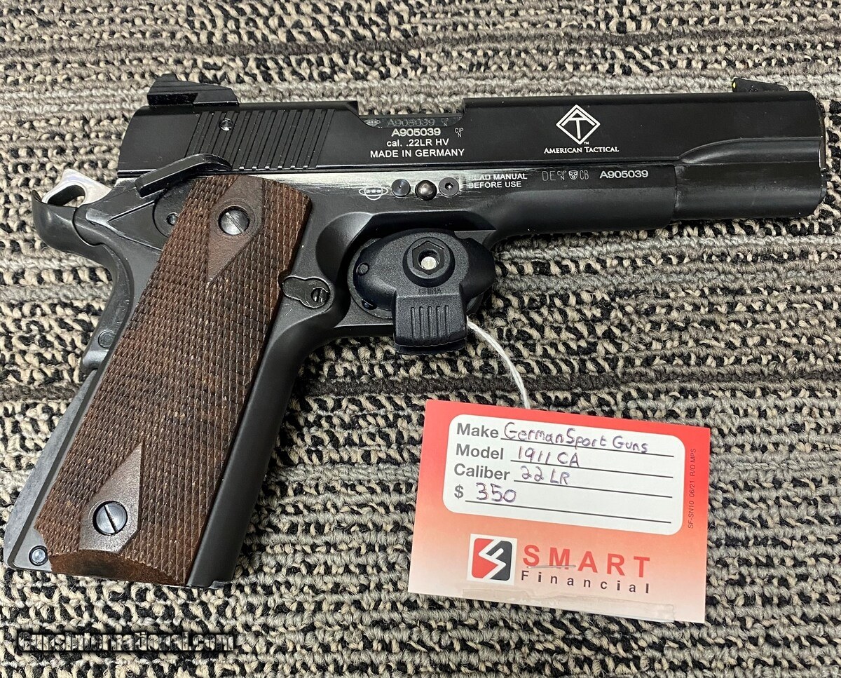 Description: Guns Listing ID: 891513 WE HAVE A GERMAN SPORT GUNS 1911 CA 22LR WITHOUT MAG INVENTORY # B5-53055-1 SOLD Manufacturer: GSG GERMAN SPORT GUNS Model: 1911 CA Caliber Info: .22 LR Condition: Used - Non-Certified Barrels: 5 BARREL Finish: BLACK /W WOOD STOCK |